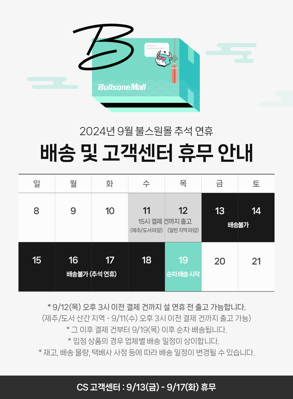 불스원몰 추석연휴 배송 및 고객센터 휴무 안내