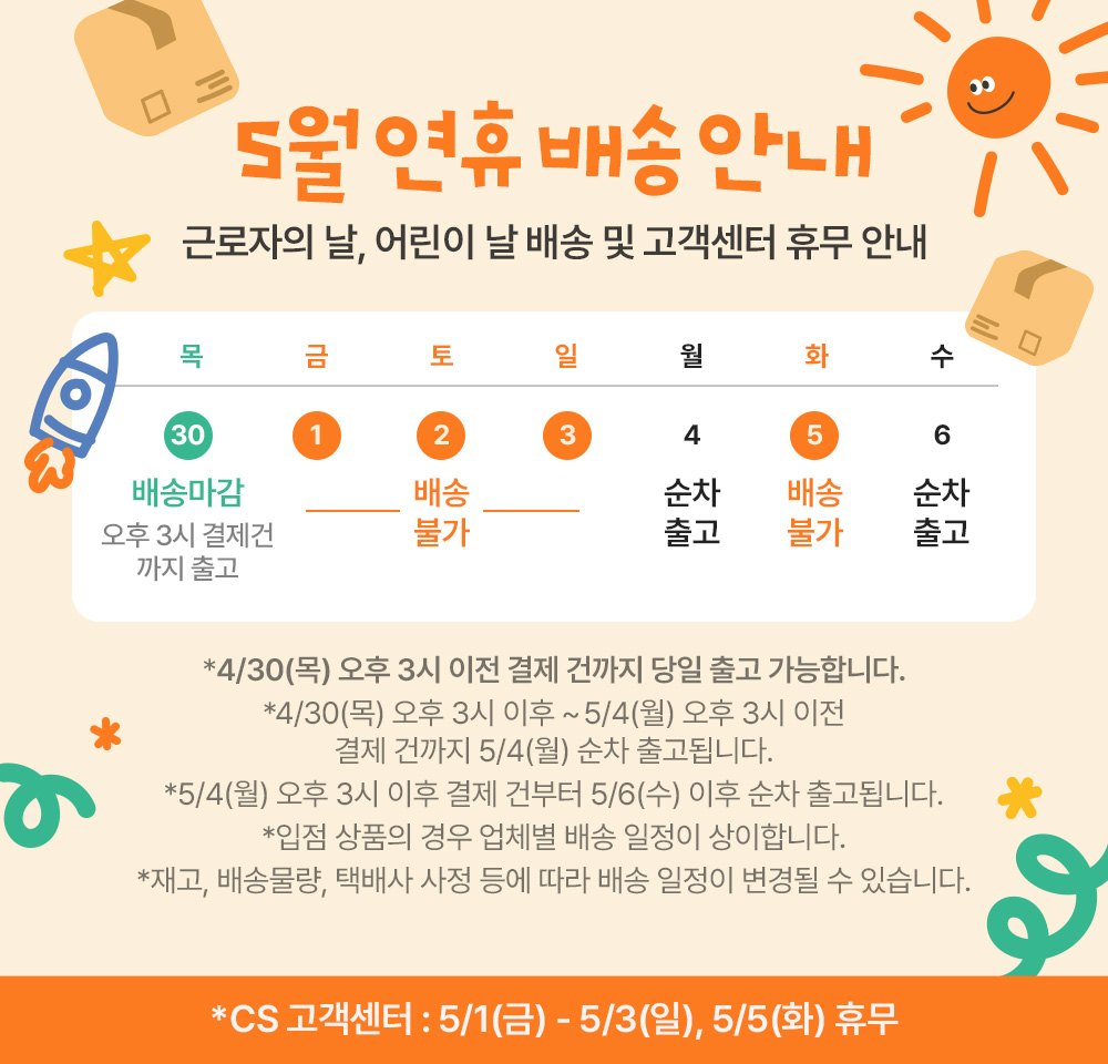 [불스원몰] 5월 연휴 배송 및 고객센터 휴무 안내