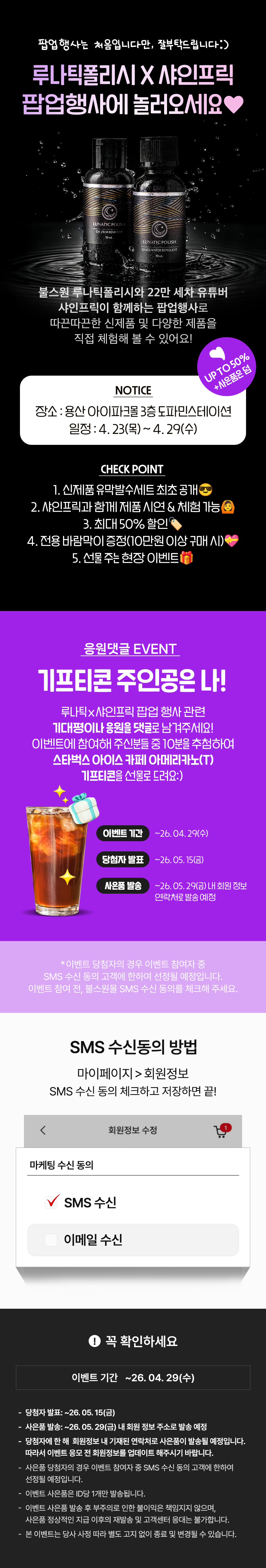 [진행중] [루나틱 x 샤인프릭] 오프라인 팝업 EVENT 2026-04-16 ~ 2026-04-29 |