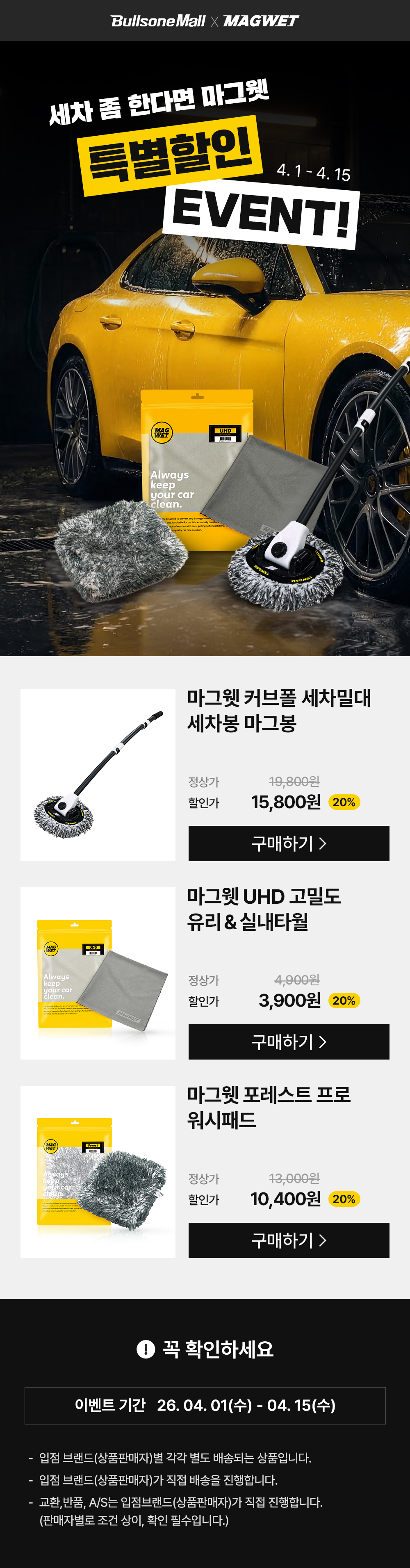 마그웻 세차시즌 특별할인EVENT 2026-04-01 ~ 2026-04-15 |