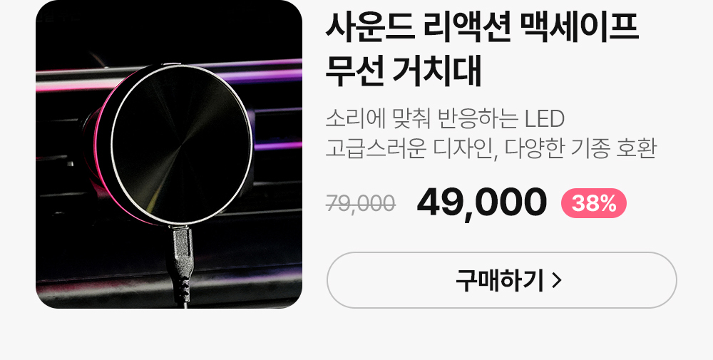 [초고속충전기증정]사운드 리액션 맥세이프 차량용 핸드폰 무선 거치대 충전기 / 9가지 Color LED 사운드에 반응 아이폰 갤럭시 호환