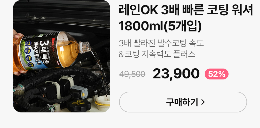 레인OK 3배 빠른 프리미엄 발수코팅 에탄올워셔액 1800ml 5개입