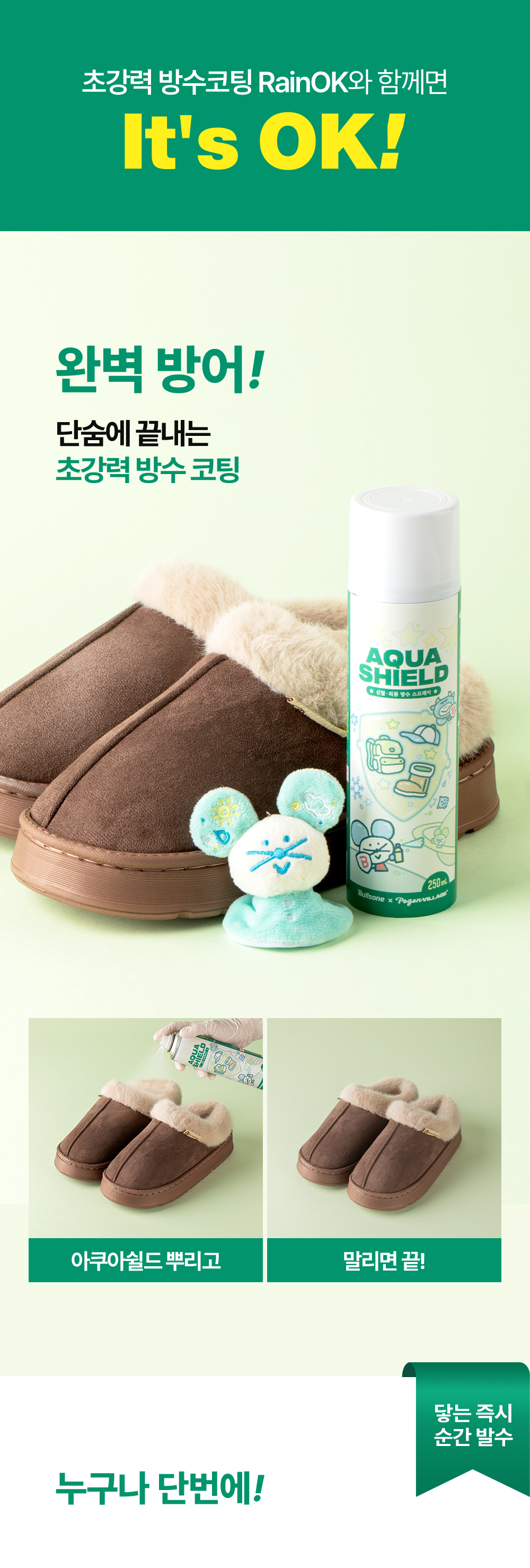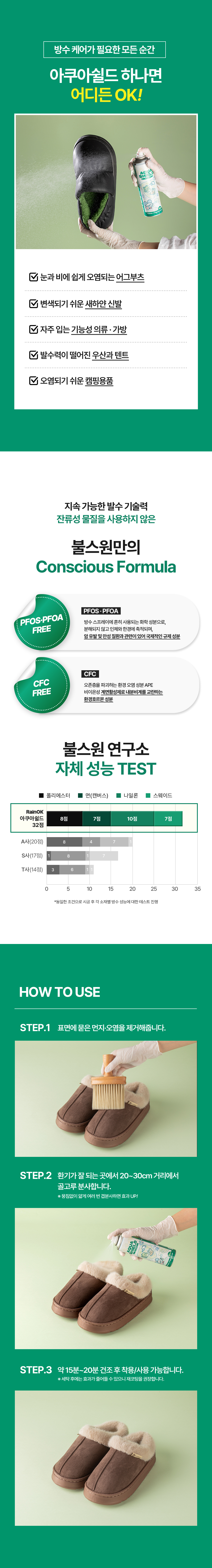 | 1. 품목 및 제품명 | [방수스프레이] • 품목 : 특수목적코팅제 • 제품명 : 레인오케이(RainOK) 아쿠아쉴드 방수 코팅제 |