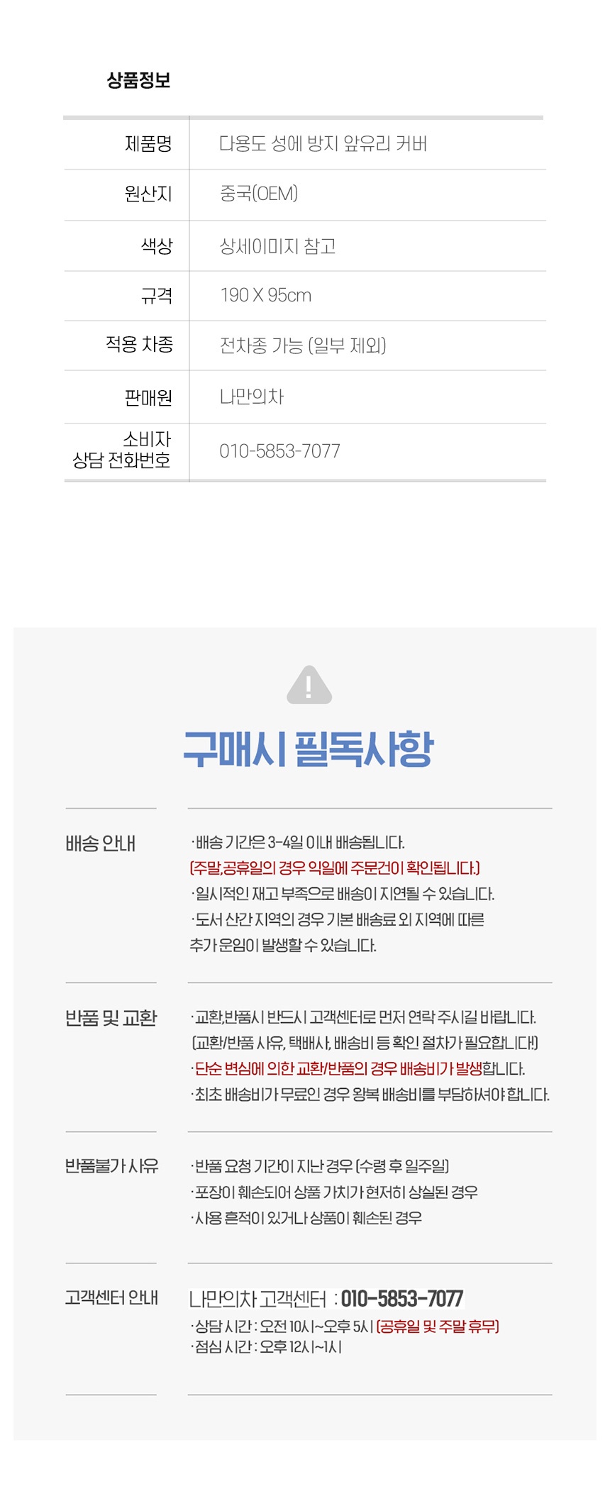 | 4. 제조자, 수입품의 경우 수입자를 함께 표기 (병행수입의 경우 병행수입 여부로 대체 가능) | 수입자 나만의차 |