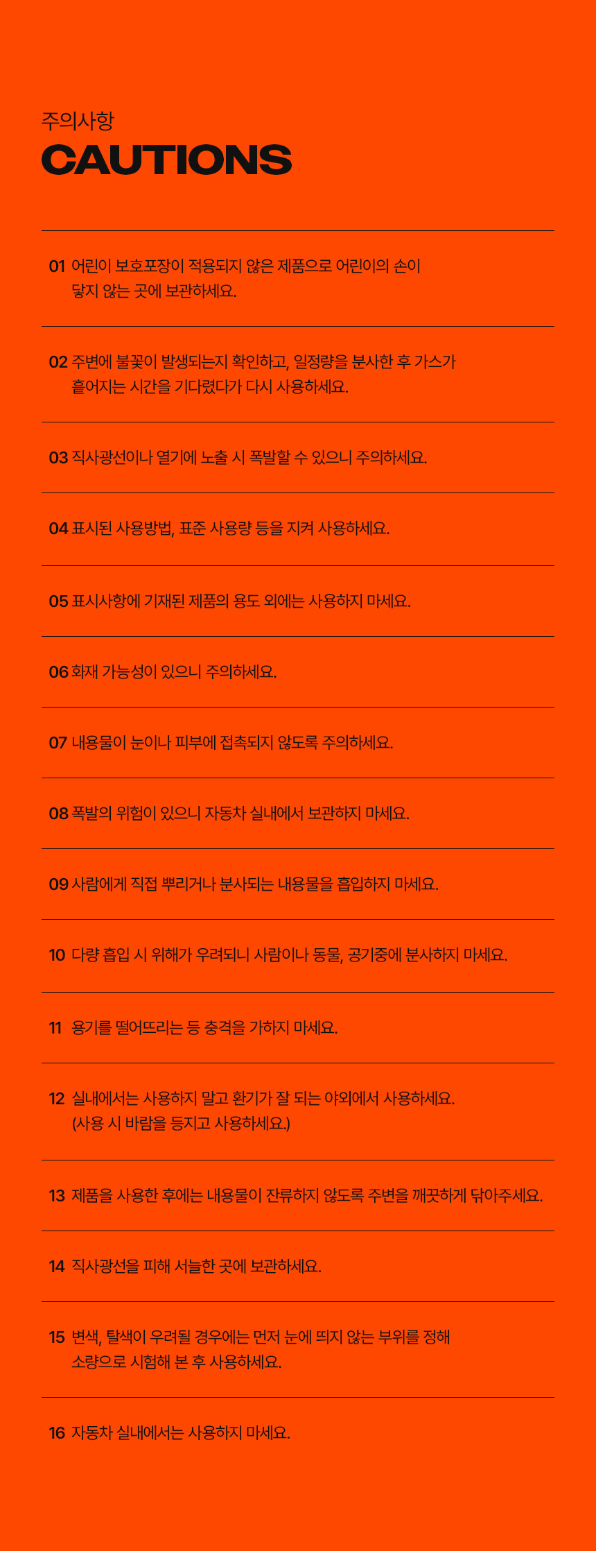 | 8. 제품사용으로 인한 위험 및 유의사항(연료절감장치에 한함) | 해당사항 없음 |