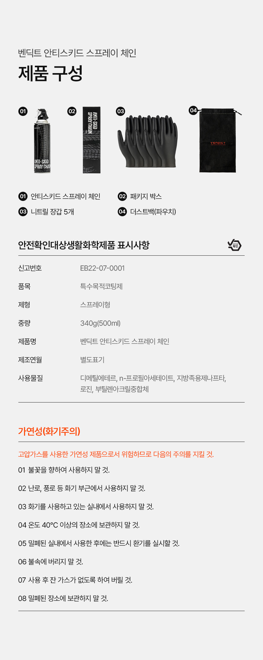 | 1. 품명 및 모델명 | 벤딕트 스프레이 체인 안티스키드 |