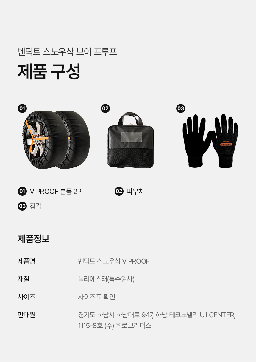 | 1. 품명 및 모델명 | 벤딕트 스노우체인 스노우삭 |