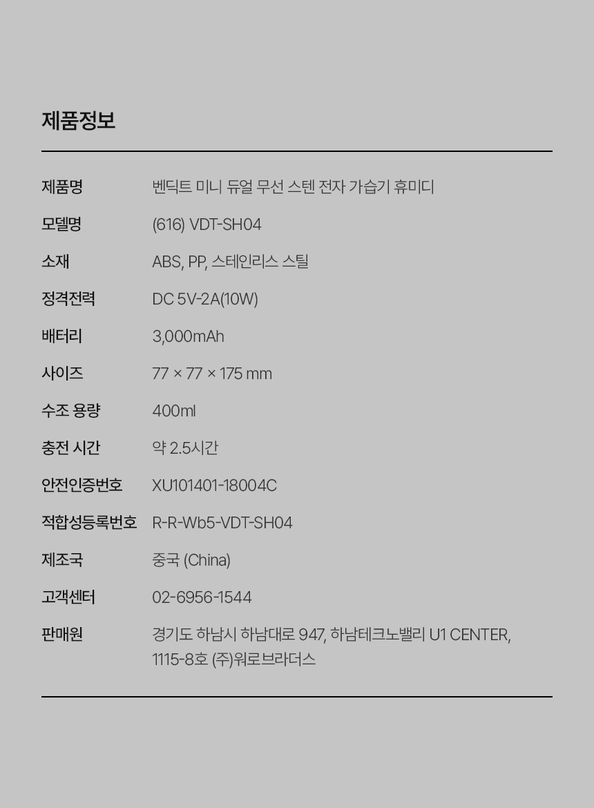 | 1. 품명 및 모델명 | 벤딕트 휴미디 가습기 |