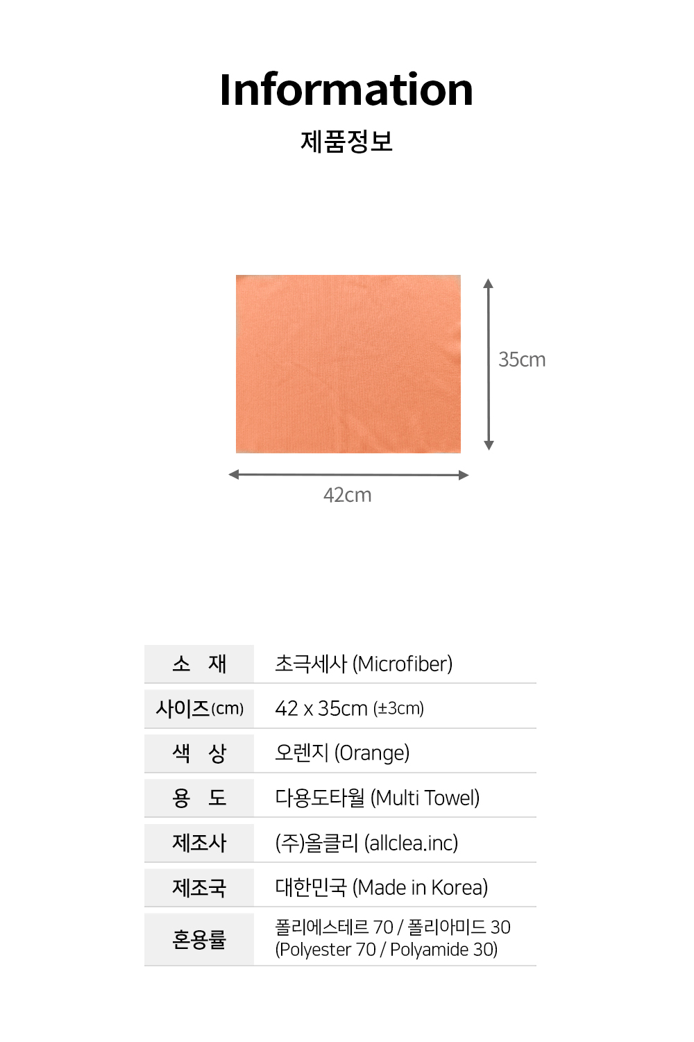 | 1. 품명 및 모델명 | 스피드폴리쉬(오렌지)(7개) 다용도타월 |