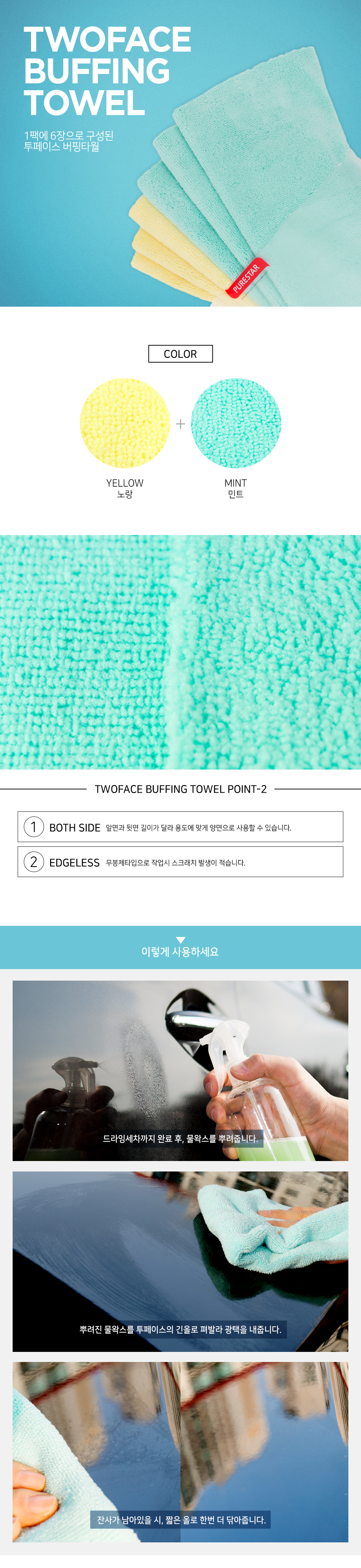 | 1. 품명 및 모델명 | 투페이스 버핑타월(6개)(민트/옐로우) |