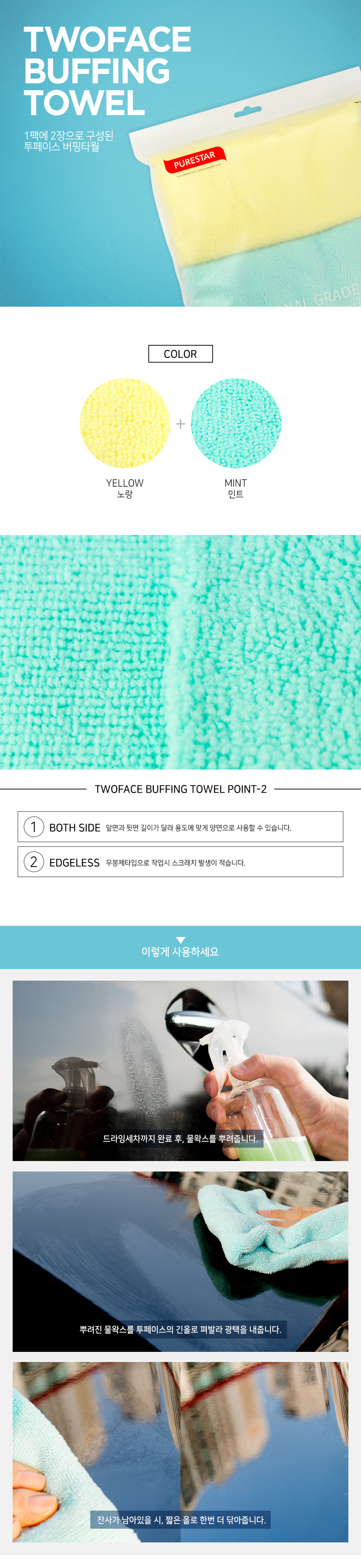| 1. 품명 및 모델명 | 투페이스 버핑타월(2개)(민트/옐로우) |