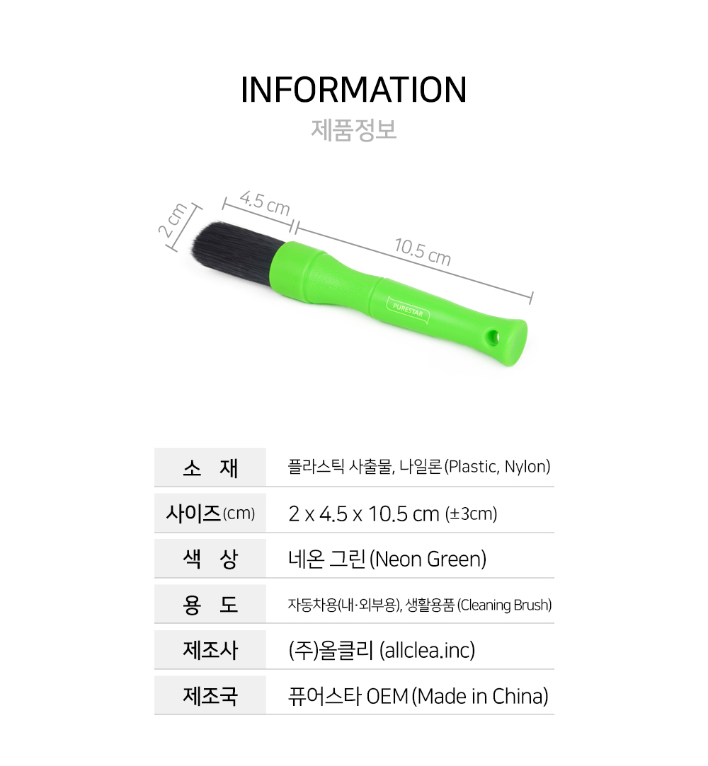 | 1. 품명 및 모델명 | 디테일링 브러쉬(중)(네온 그린) |