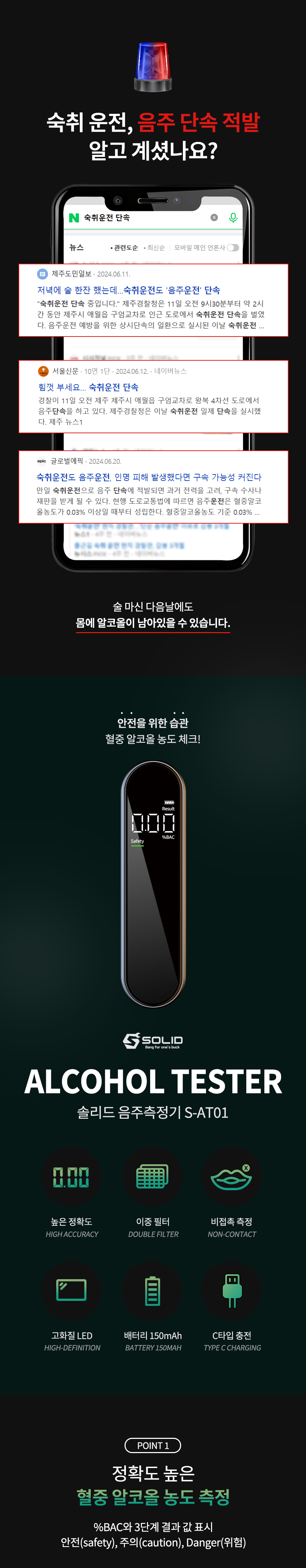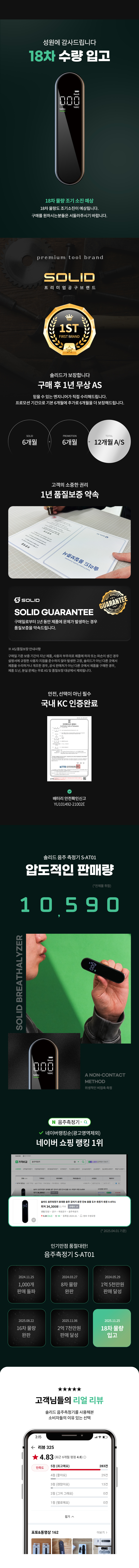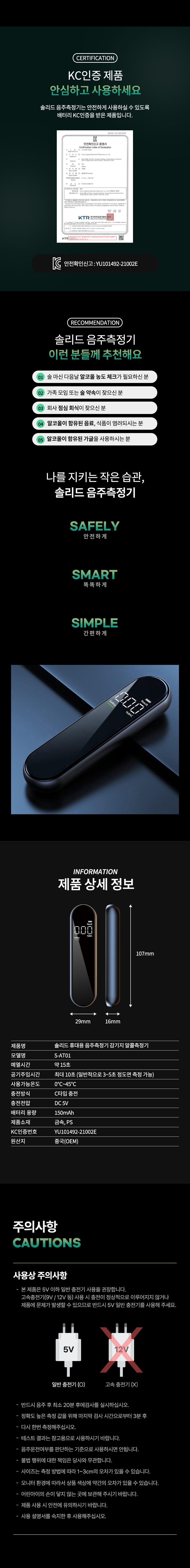 | 1. 품명 및 모델명 | 솔리드 휴대용 음주측정기 음주감지기 알콜측정기 S-AT01 |