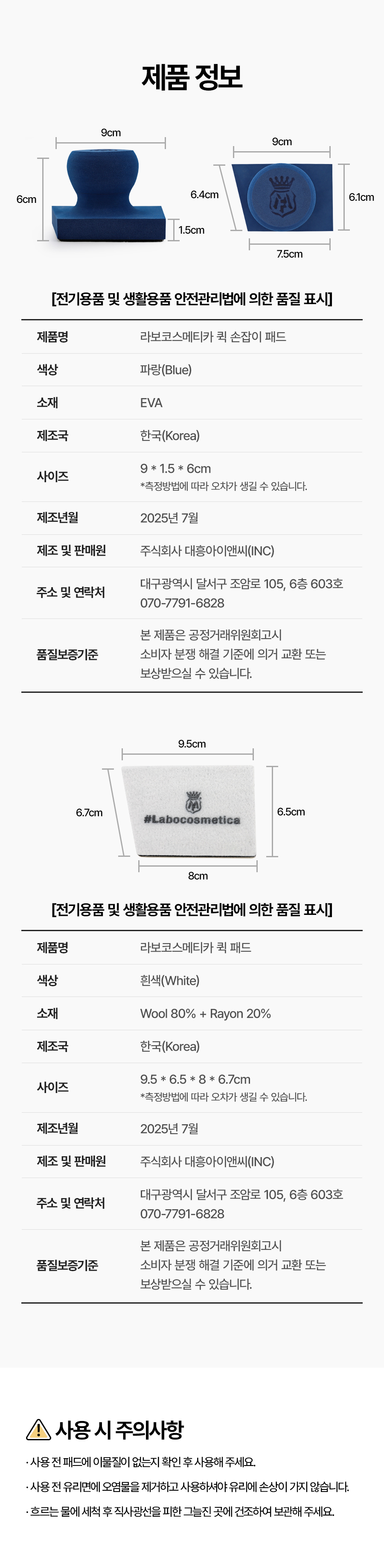 | 1. 품명 및 모델명 | 라보코스메티카 퀵 손잡이패드 / 라보코스메티카 퀵 패드 |