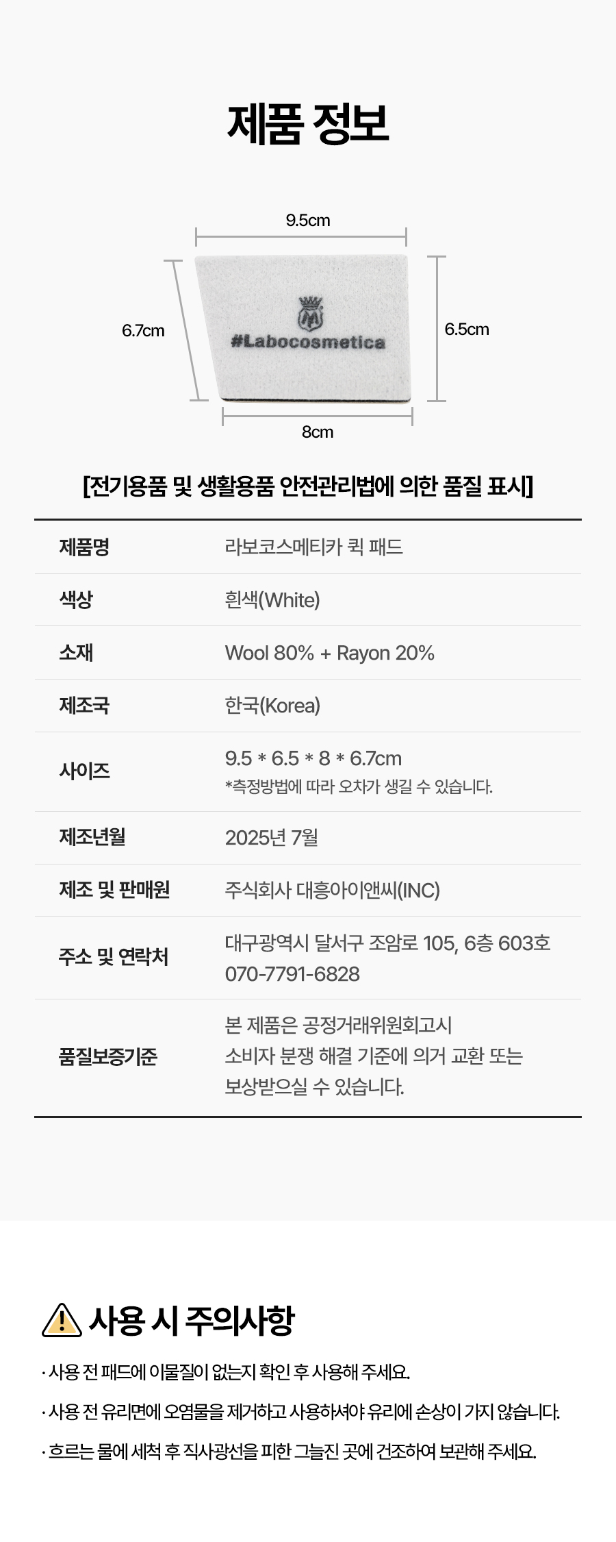 | 1. 품명 및 모델명 | 라보코스메티카 퀵 손잡이 패드 리필용 2개입 |