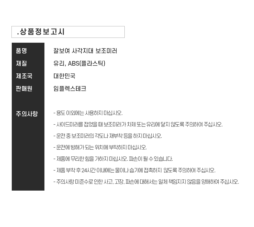 | 1. 품명 및 모델명 | 사각지대 보조미러 |