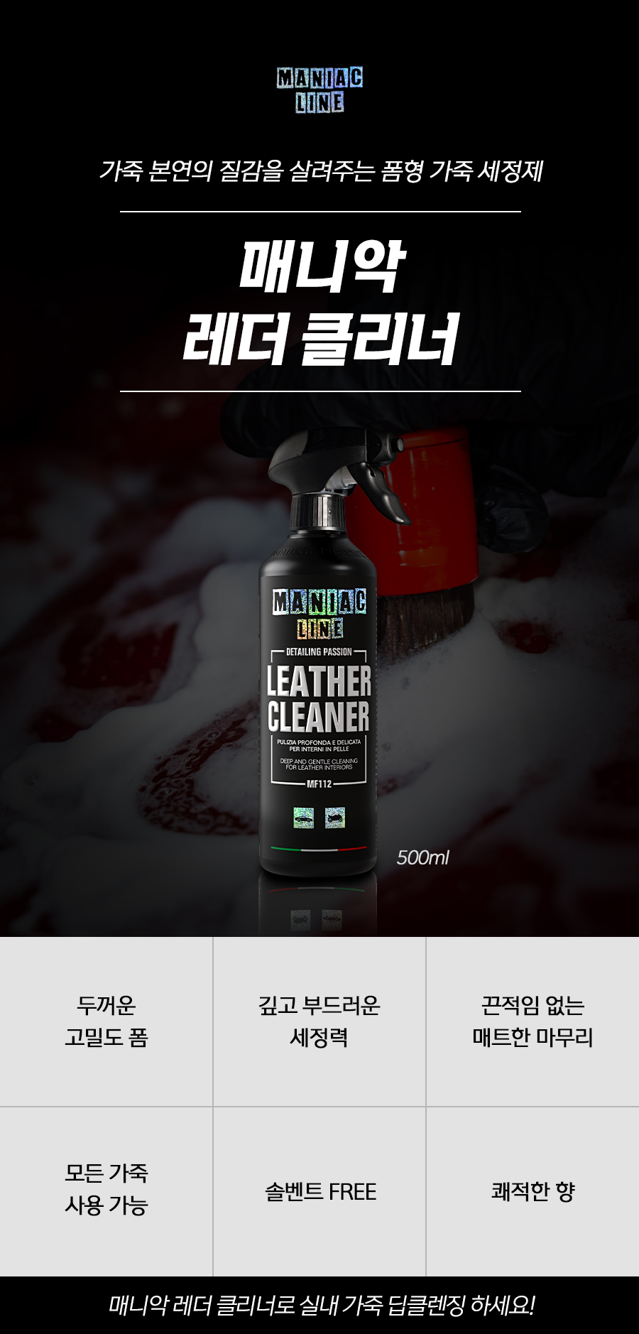 | 1. 품목 및 제품명 | 매니악 레더 클리너(MANIAC LEATHER CLEANER) 세정제품 |