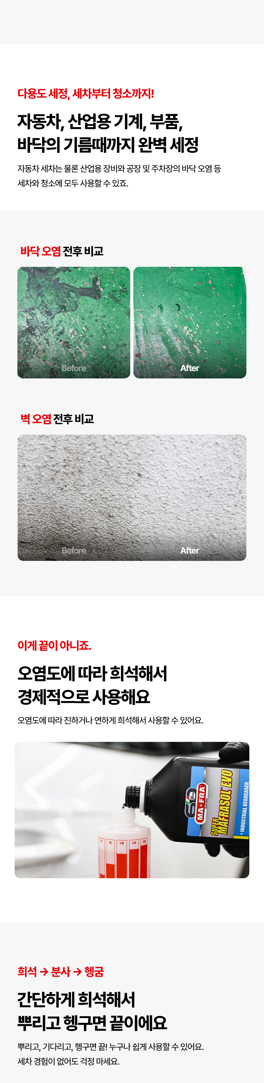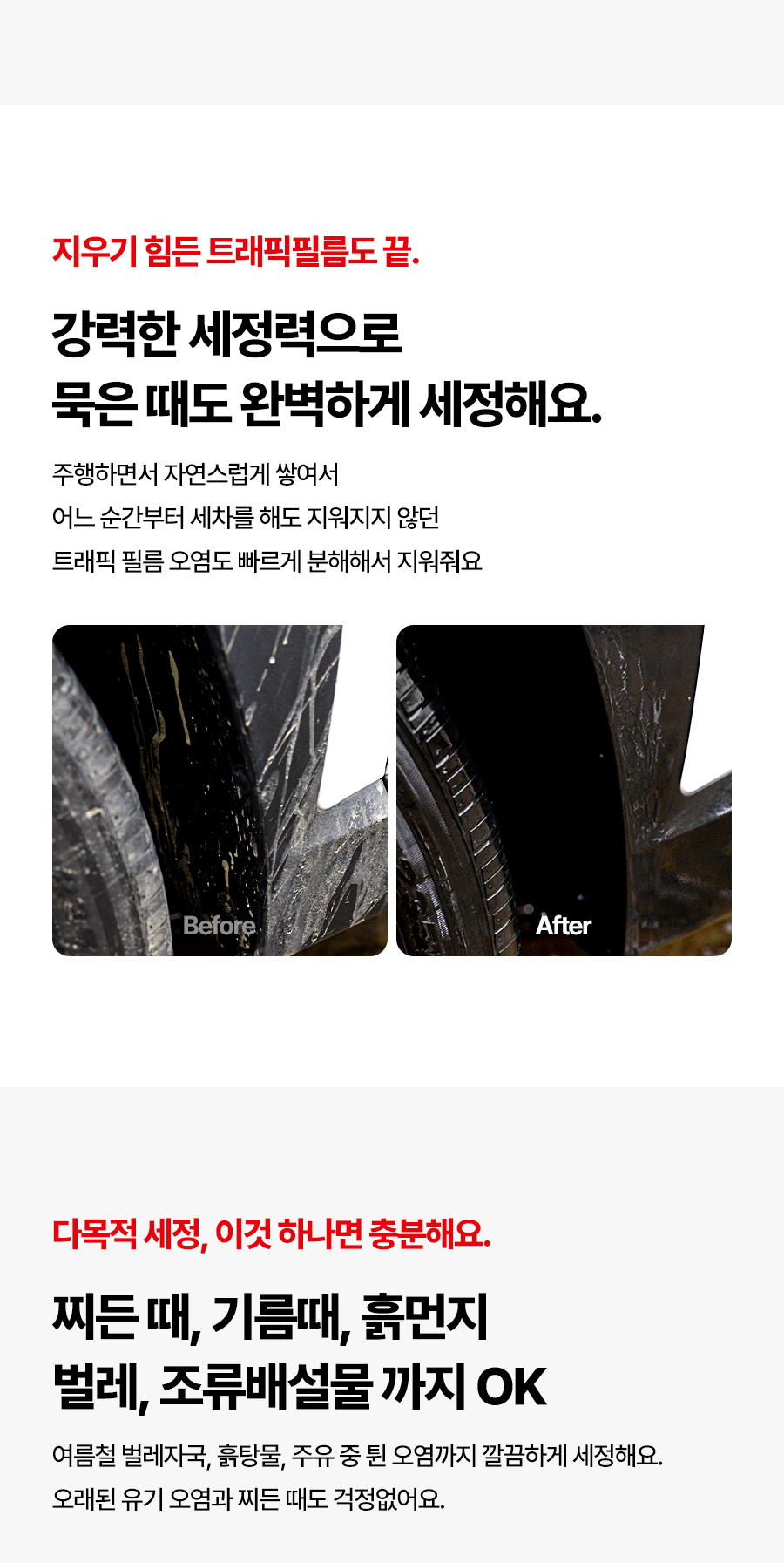 | 2. 용도(표백제의 경우 계열을 함께 표시) 및 제형 | 세정제품 > 세정제 > 일반용 (건물 바닥용) 세정제품 > 세정제 > 일반용 (기타표면세정용 (기계,장비,부품)) 세정제품 > 세정제 > 자동차용 (외부용) 세정제품 > 제거제 > 일반용 (기타제거용 (새똥,벌레,흙먼지)) 세정제품 > 제거제 > 일반용 (타르·기름제거용) 세정제품 > 제거제 > 자동차용 (외부용 (새똥,벌레,흙먼지)) 보충형(분무기형), 보충형(액체형) |
