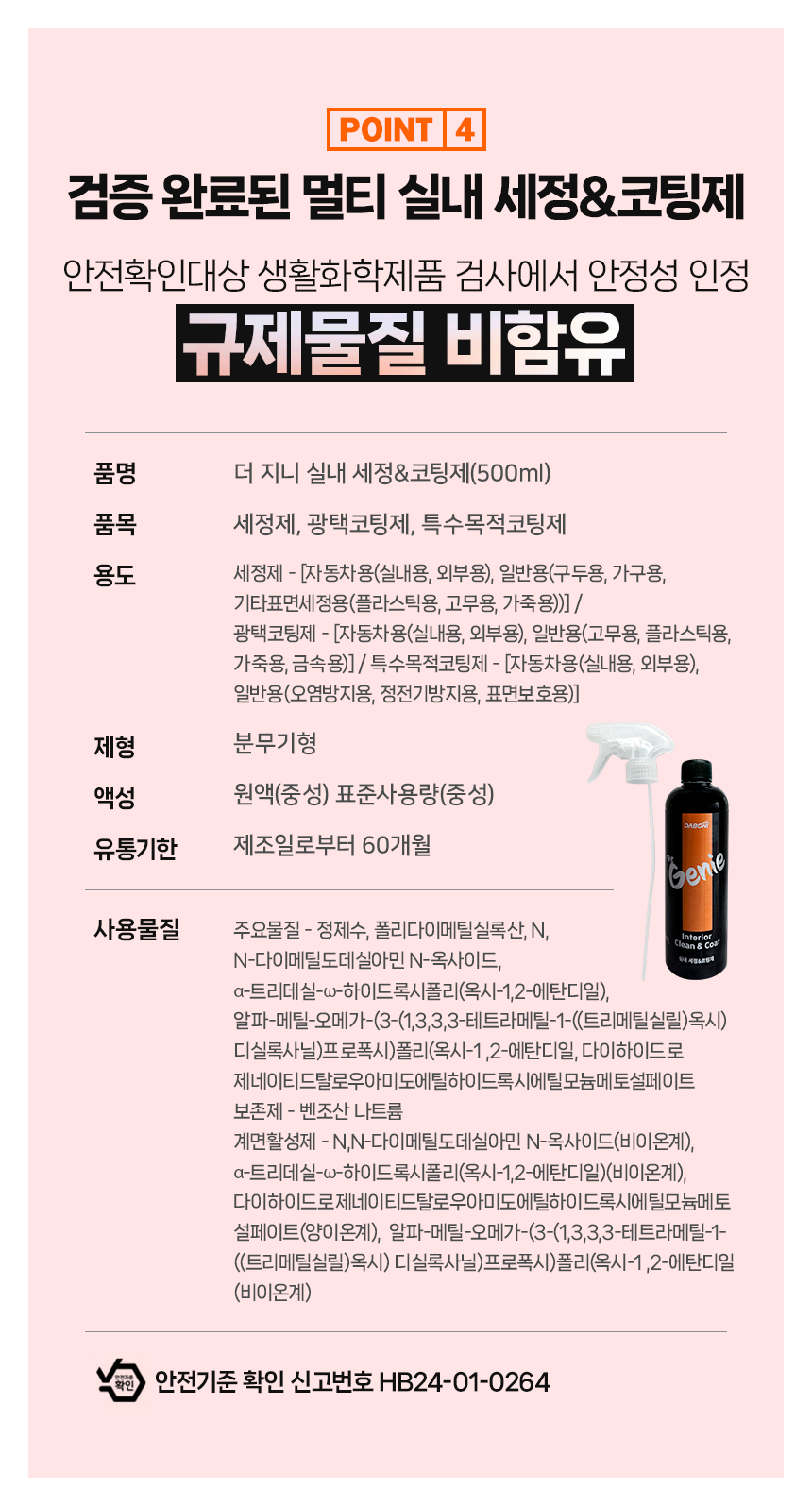 | 1. 품목 및 제품명 | 더 지니 실내 세정&코팅제 |