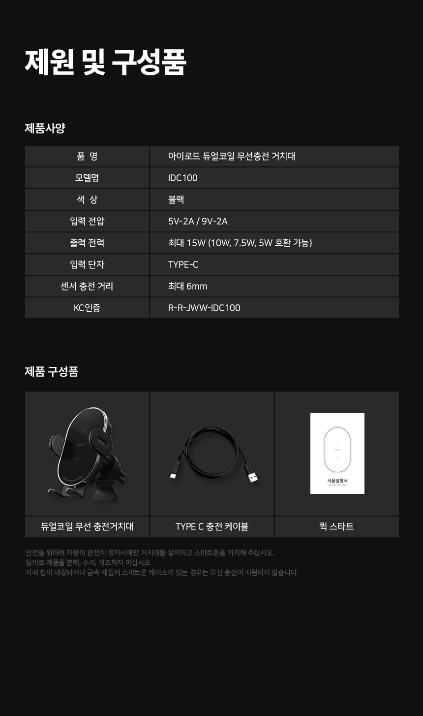| 1. 품명 및 모델명 | 아이로드 차량용 핸드폰 듀얼코일 무선충전거치대 |