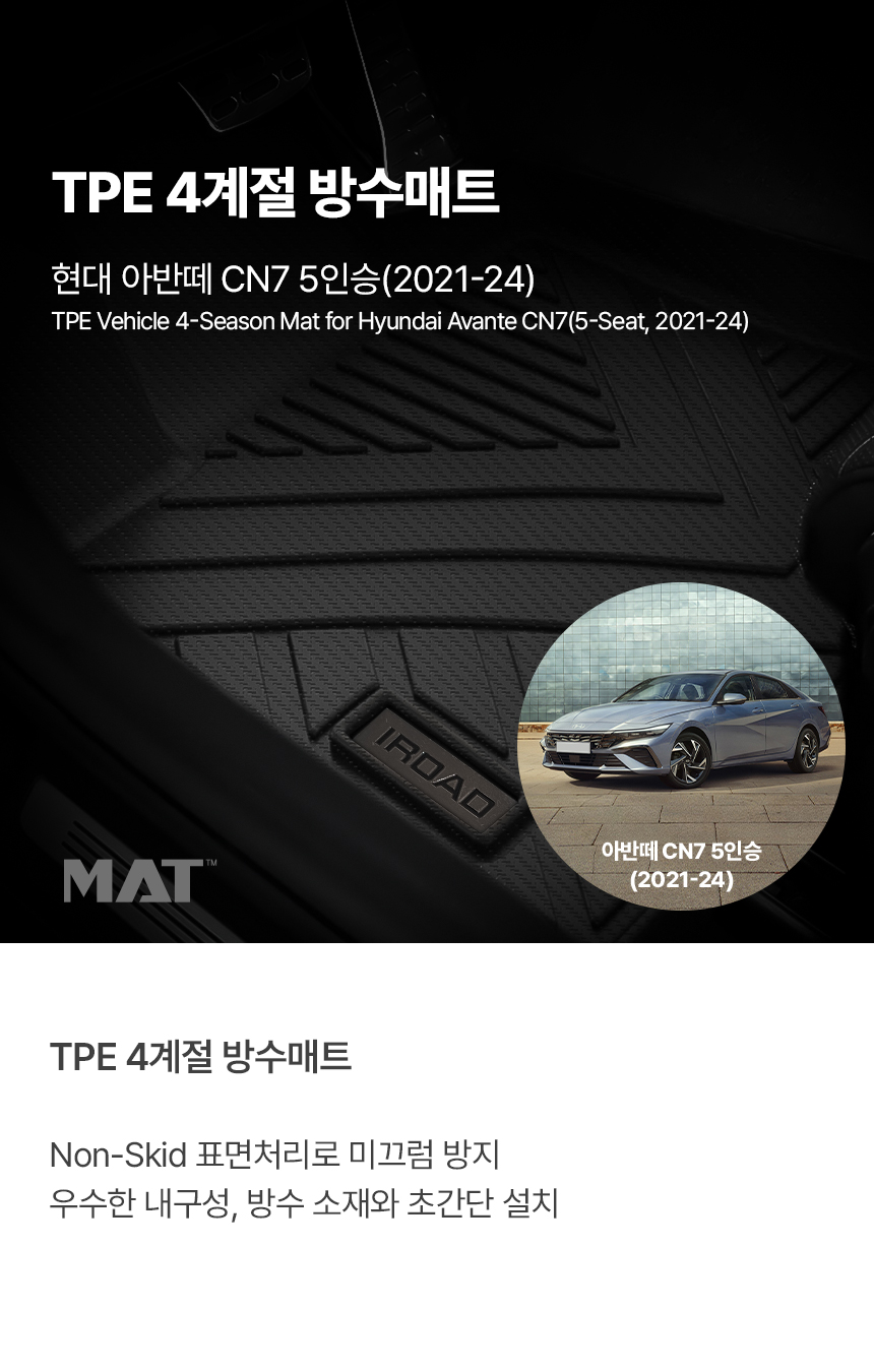 | 1. 품명 및 모델명 | 아이로드 TPE 카매트 풀커버 현대 아반떼 CN7 5인승 (2021-2024) |