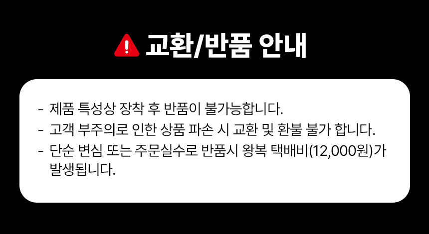 - 제품 개봉 및 장착하신 제품은 반품 및 환불이 불가능 합니다 (단, 불량제품 제외)