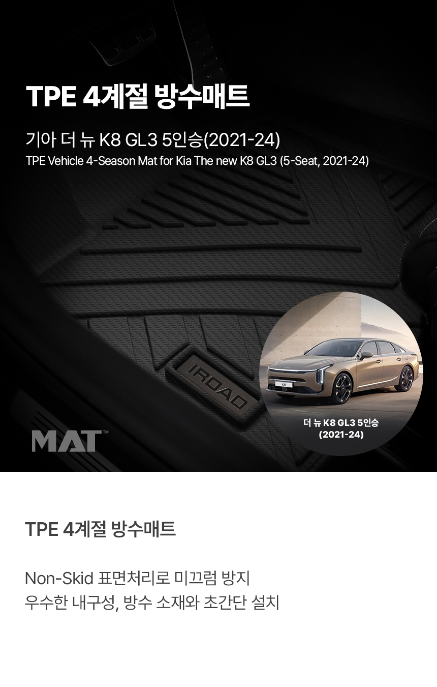 | 1. 품명 및 모델명 | 아이로드 TPE 카매트 풀커버 / 기아_K8 2WD 5인승 (21년~24년) |