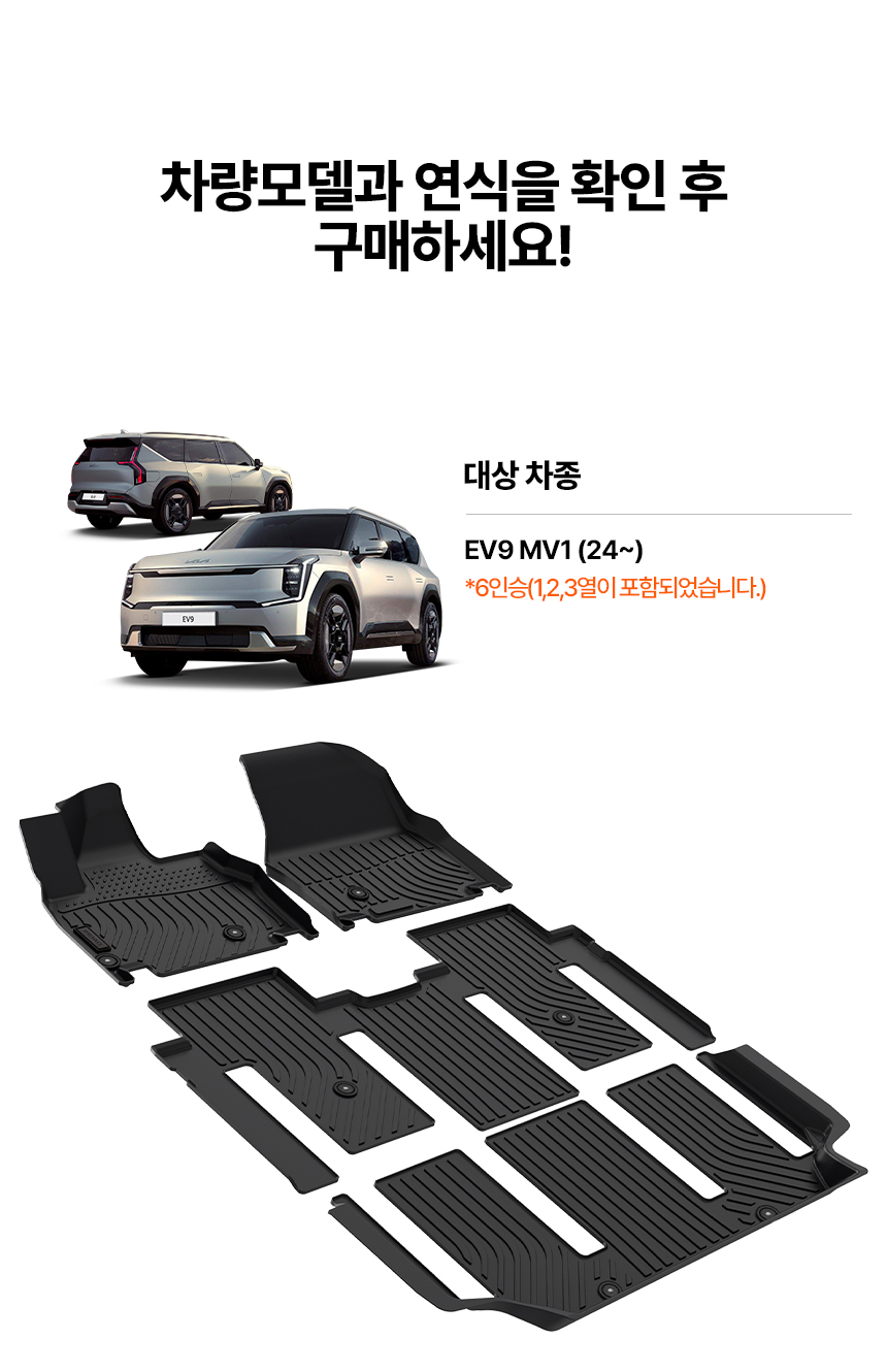 | 1. 품명 및 모델명 | 아이로드 TPE 카매트 풀커버 / 기아_EV9 MV1 6인승(옵션선택) 2WD 스위블시트 (24년~현재) |