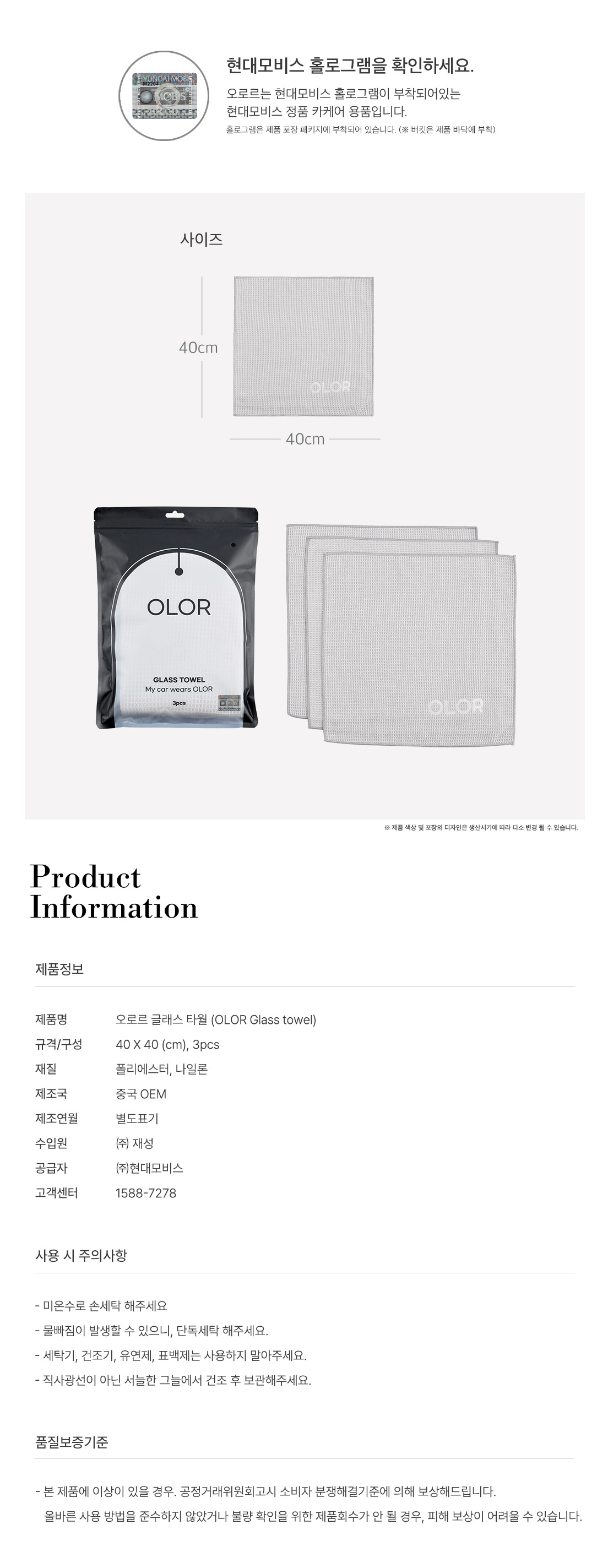 | 1. 품명 및 모델명 | 오로르 글래스타올 40*40 3개 |
