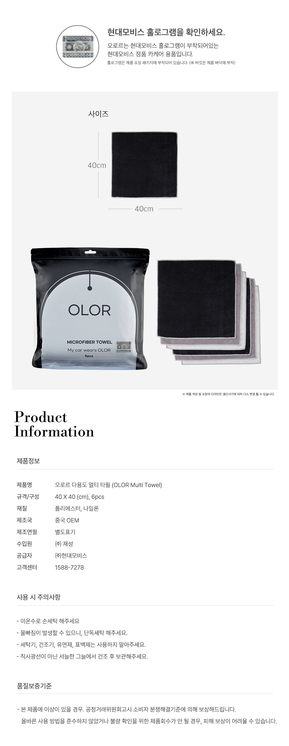 | 1. 품명 및 모델명 | 오로르 다용도타올 40*60 6개 |