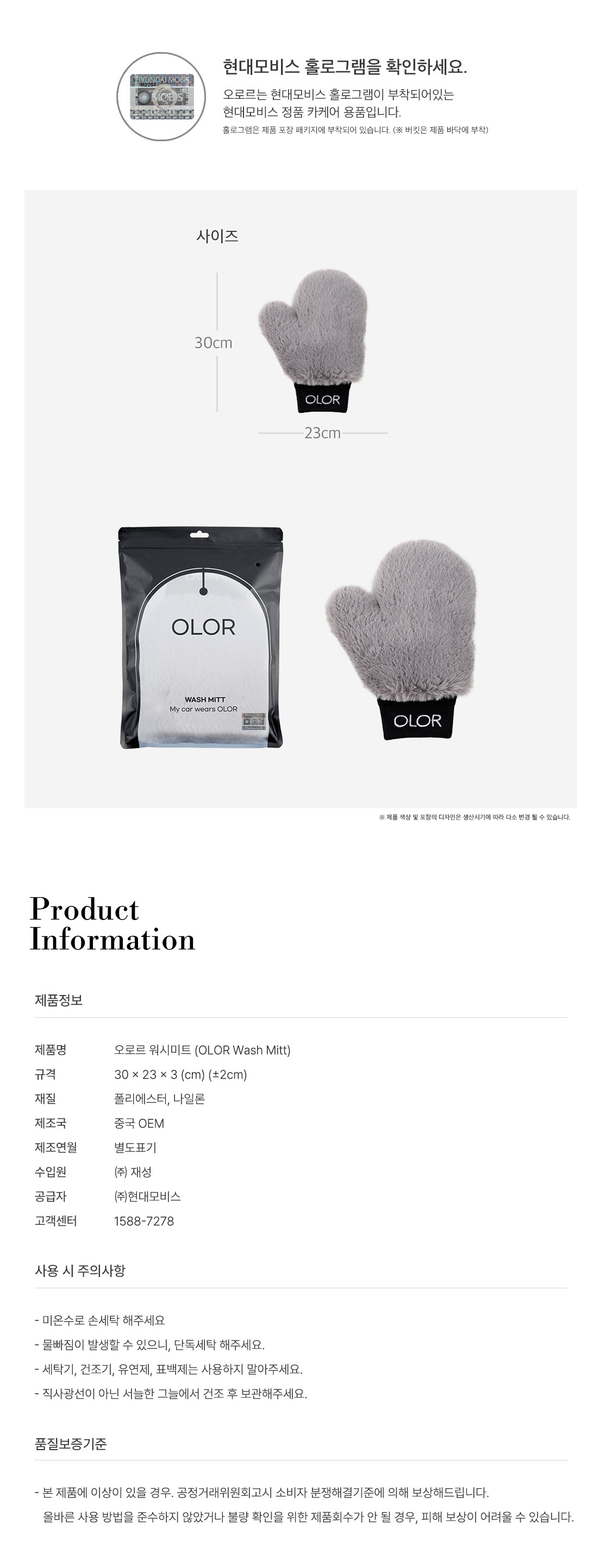 | 1. 품명 및 모델명 | 오로르 세차용장갑 워시미트 |