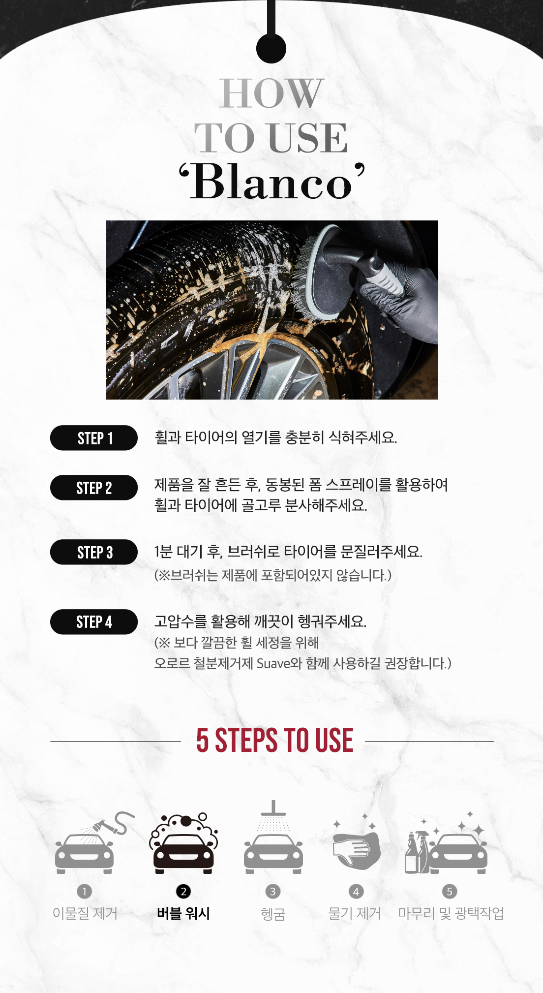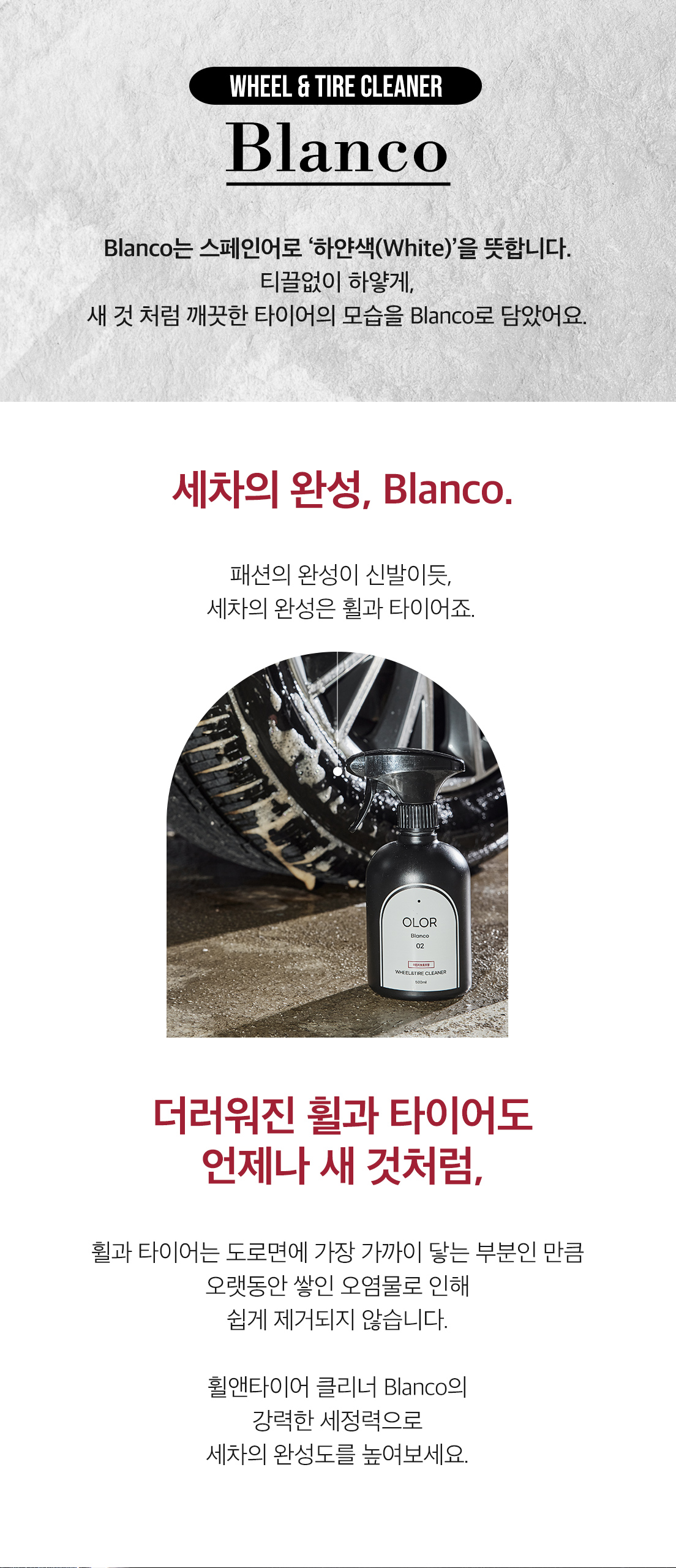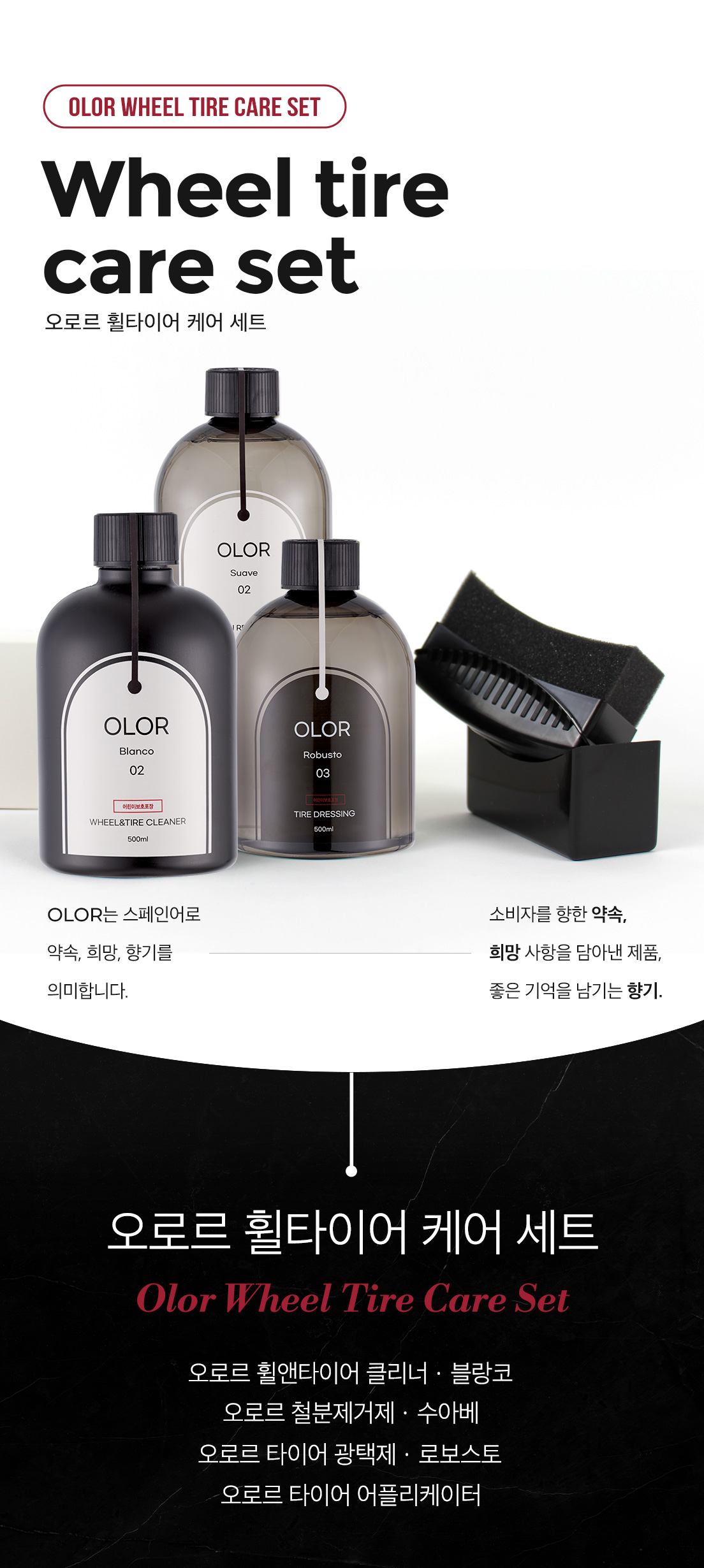 | 1. 품명 및 모델명 | 블랑코(휠&타이어클리너)+수아베(철분제거제)+로보스토(타이어광택제)+타이어 어플리케이터 |