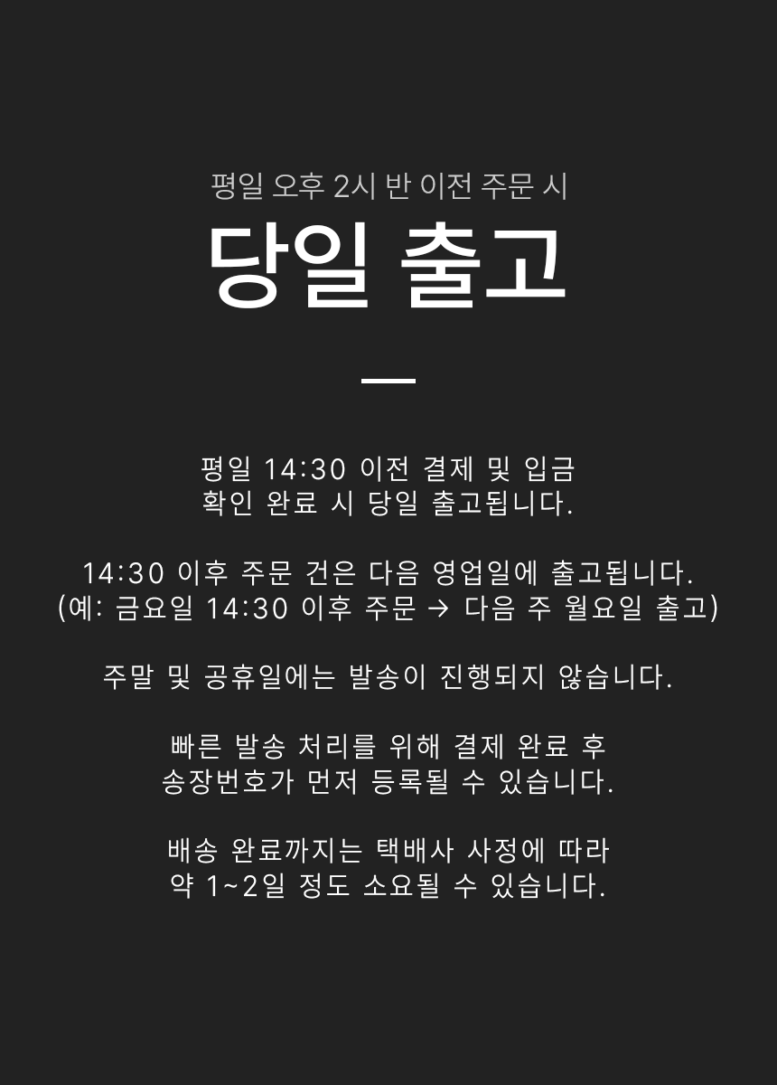 * 경우에 따라 반품 및 교환 시 택배비가 청구 될 수 있습니다.