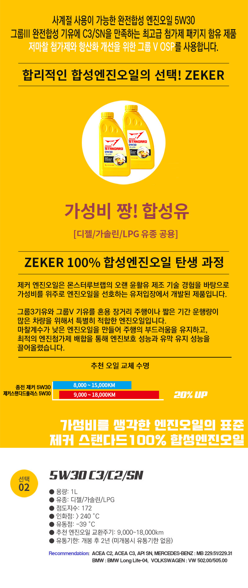| 1. 품명 및 모델명 | 제커 스탠다드플러스 5W30 OPS함유 SN C3 디젤 가솔린 공용 엔진오일 1L |