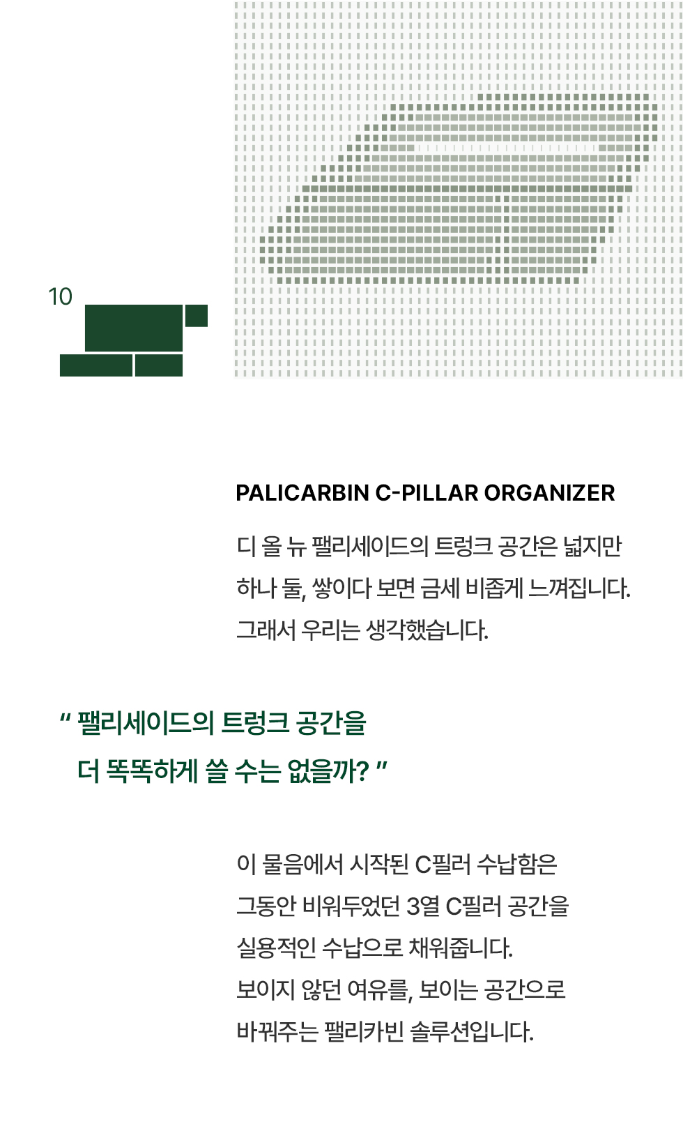 | 1. 품명 및 모델명 | 팰리세이드 LX3 튜닝 용품 디올뉴 펠리세이드 윈도우백 차박용품 C필러 수납함 메이튼 팰리 / MMLX329, MMLX330 |