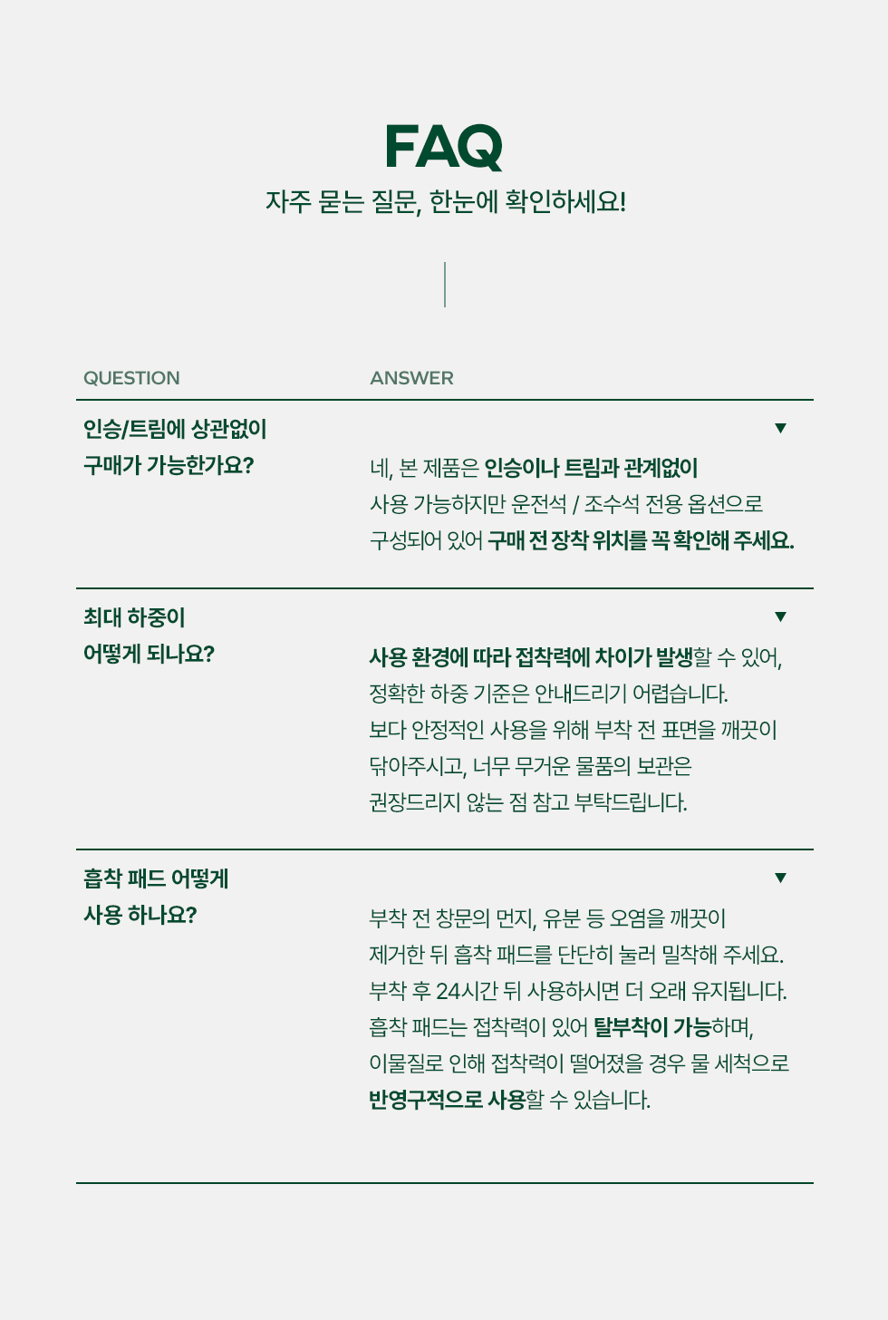 | 8. 제품사용으로 인한 위험 및 유의사항(연료절감장치에 한함) | 상세페이지 참조 |