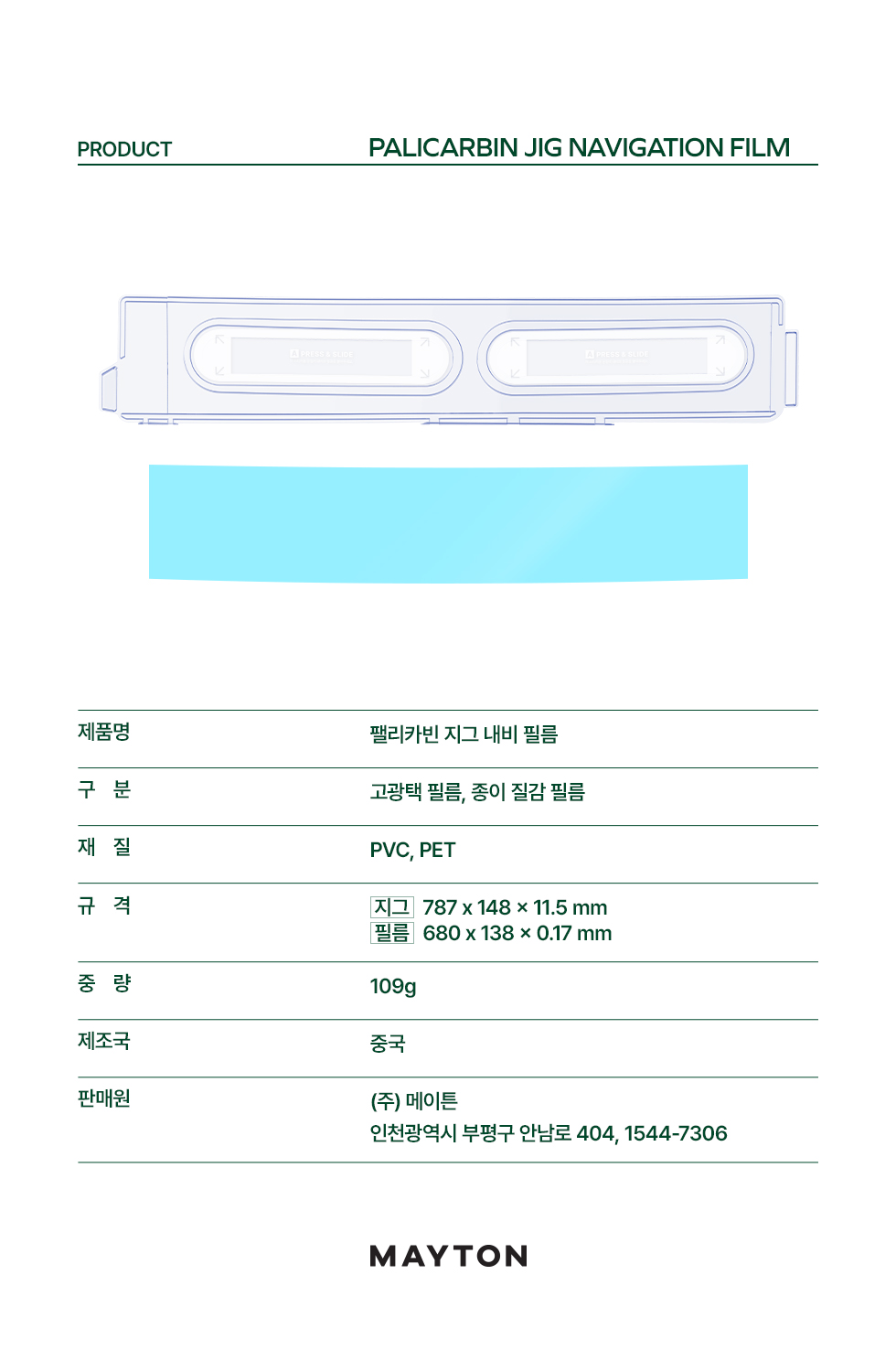 | 1. 품명 및 모델명 | 디올뉴 팰리세이드 LX3 지그 네비 필름 고광택 메이튼 팰리카빈 / MMLX350 |