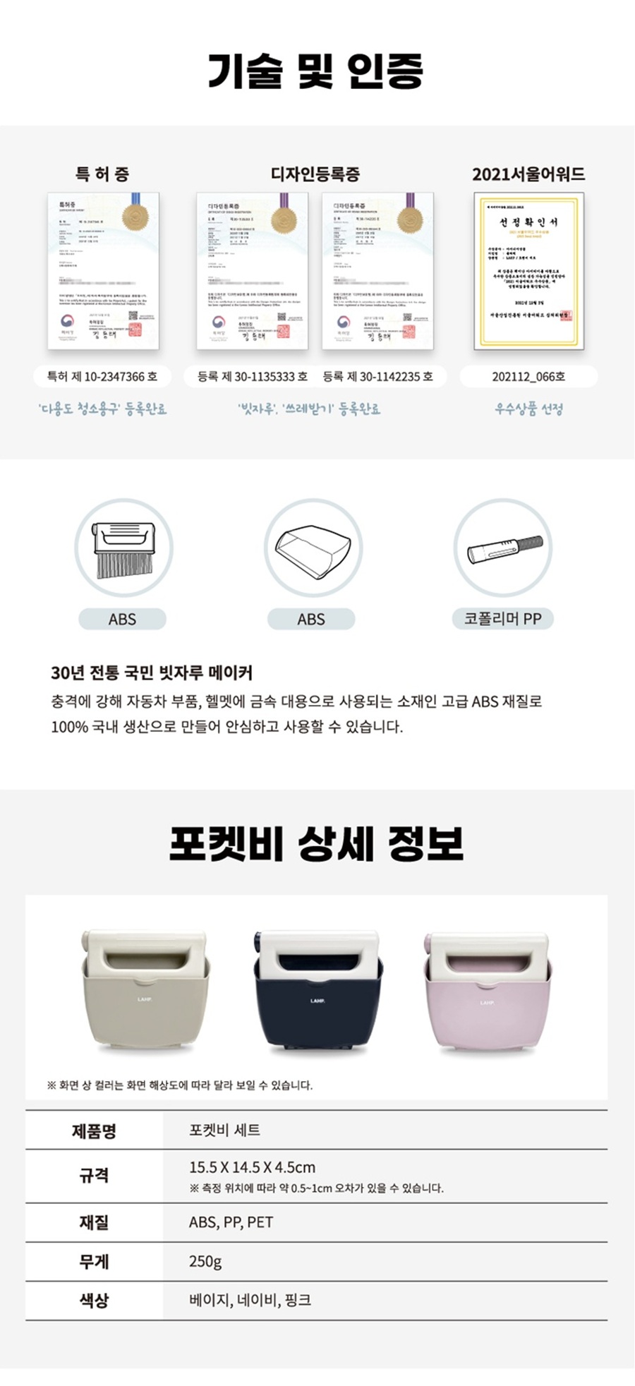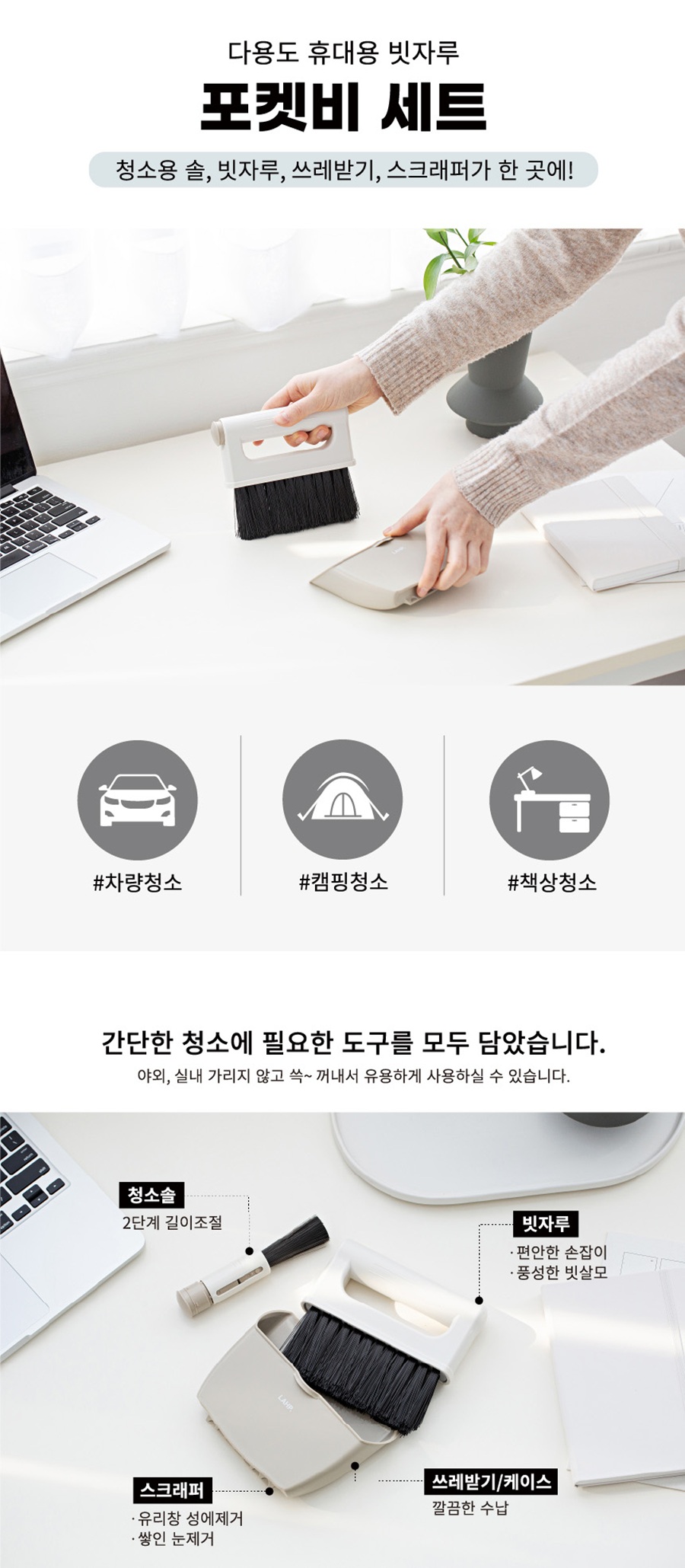 | 1. 품명 및 모델명 | 차량용 청소도구 포켓비 풀세트 미니 빗자루 쓰레받기 청소솔 세트 |