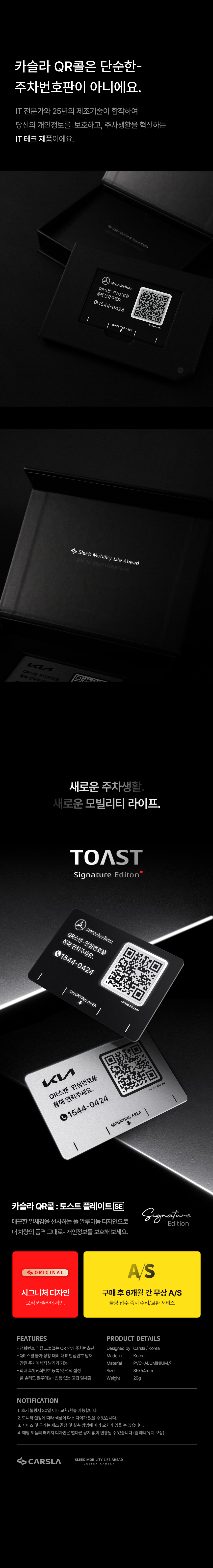 | 1. 품명 및 모델명 | 카슬라 QR 주차번호판 안심번호 주차번호판 토스트 SE |
