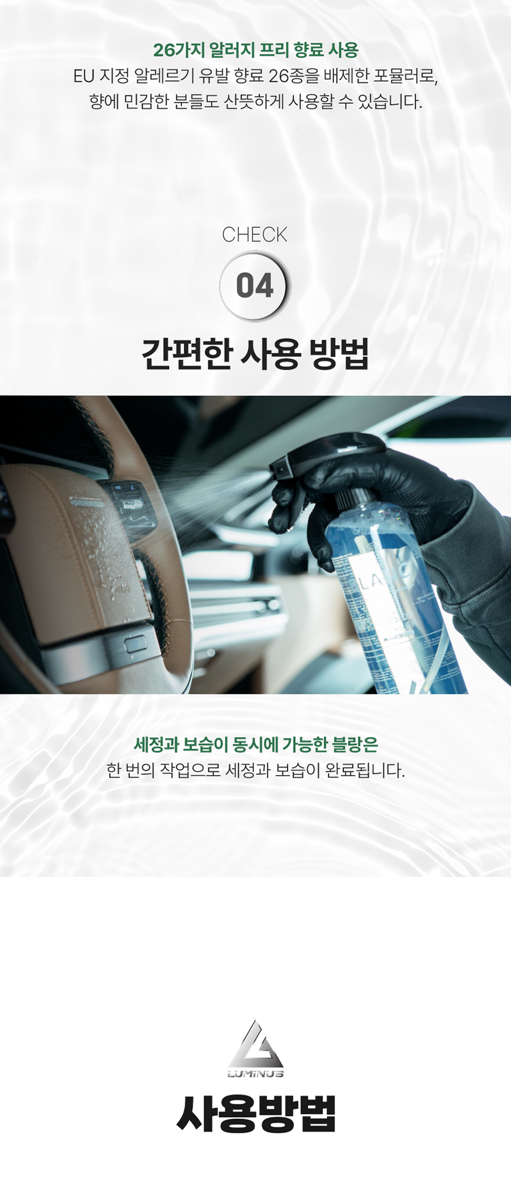 | 2. 용도(표백제의 경우 계열을 함께 표시) 및 제형 | 세정제-자동차용(실내용) 제거제-자동차용(실내용) |