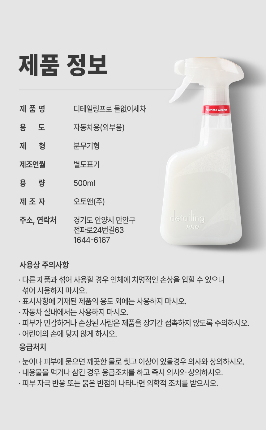 | 1. 품목 및 제품명 | 디테일링프로 ECO 물없이 세차 |