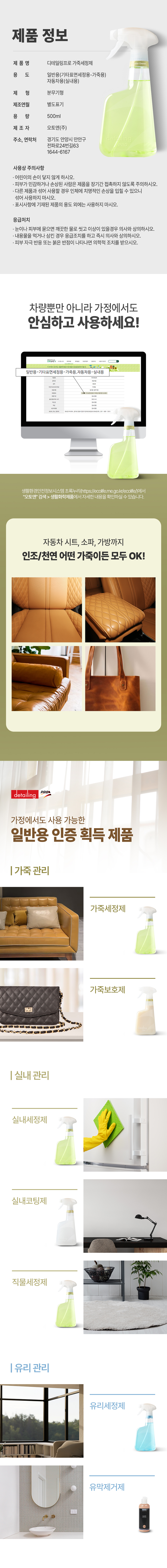 | 1. 품목 및 제품명 | 디테일링프로 ECO 가죽세정제 |