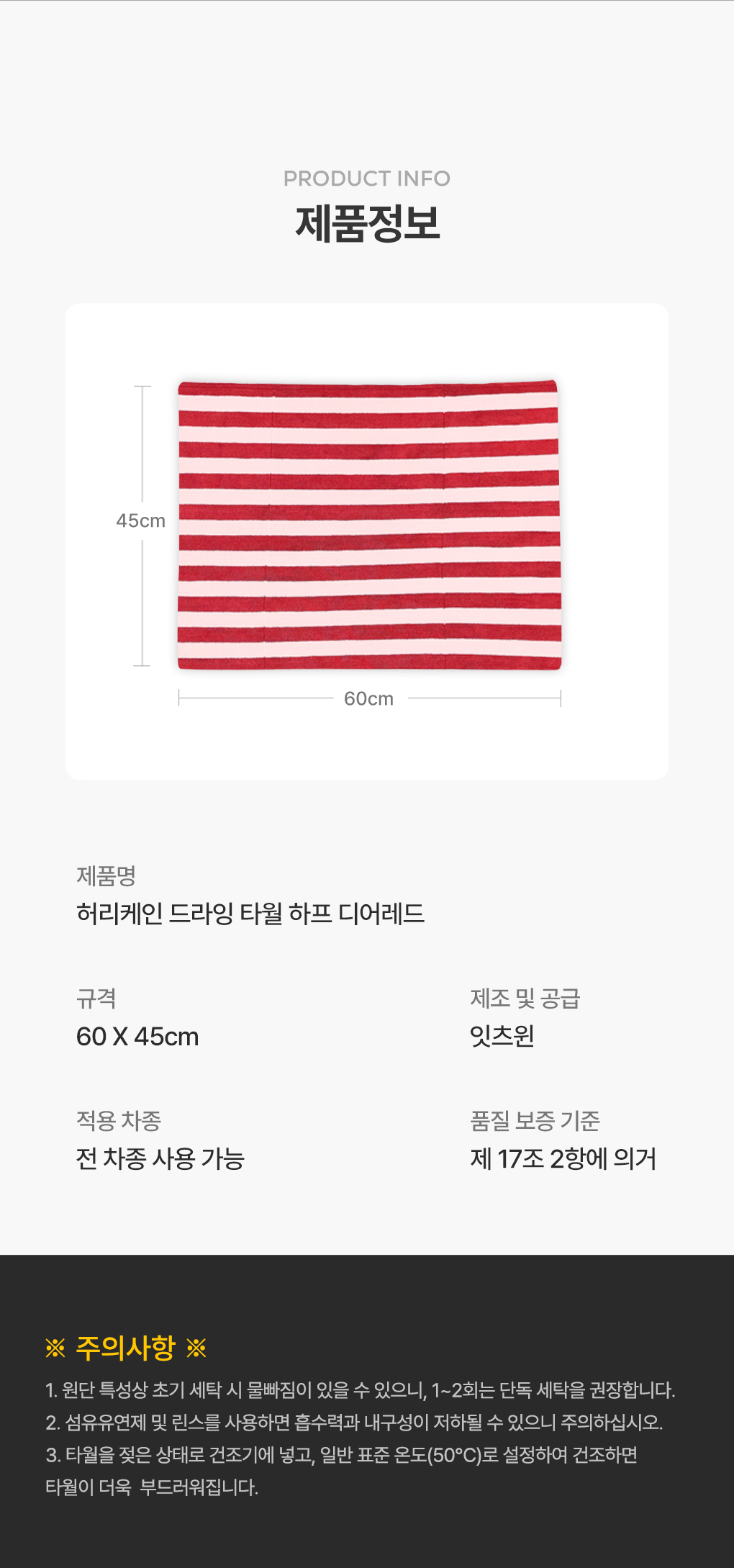 | 1. 품명 및 모델명 | [잇츠윈] 허리케인 드라잉 타월 하프 디어레드 |