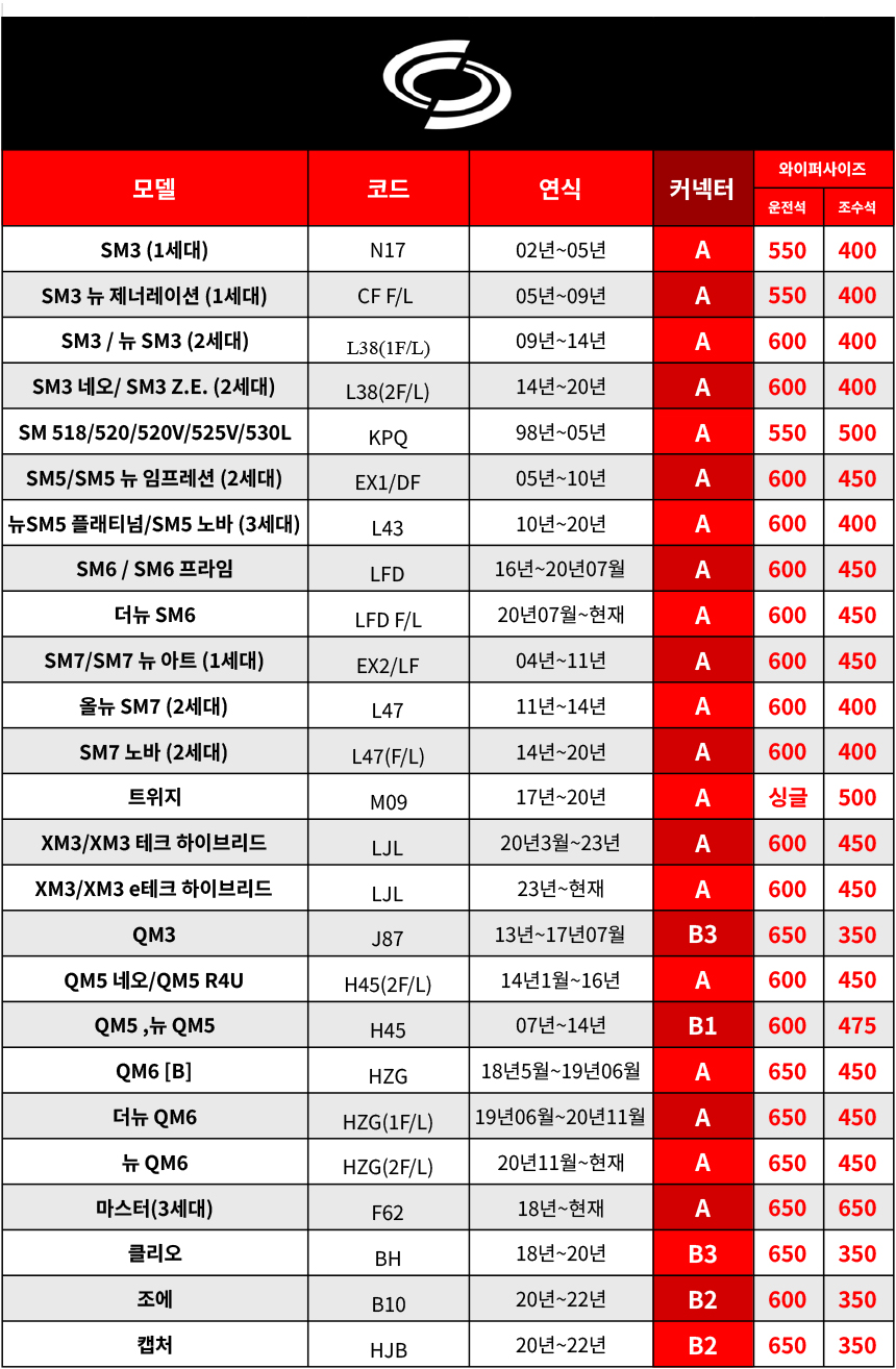 | 7. 적용차종 | 갤로퍼, 싼타페, 제네시스, 프라이드, 에스페로 등 |