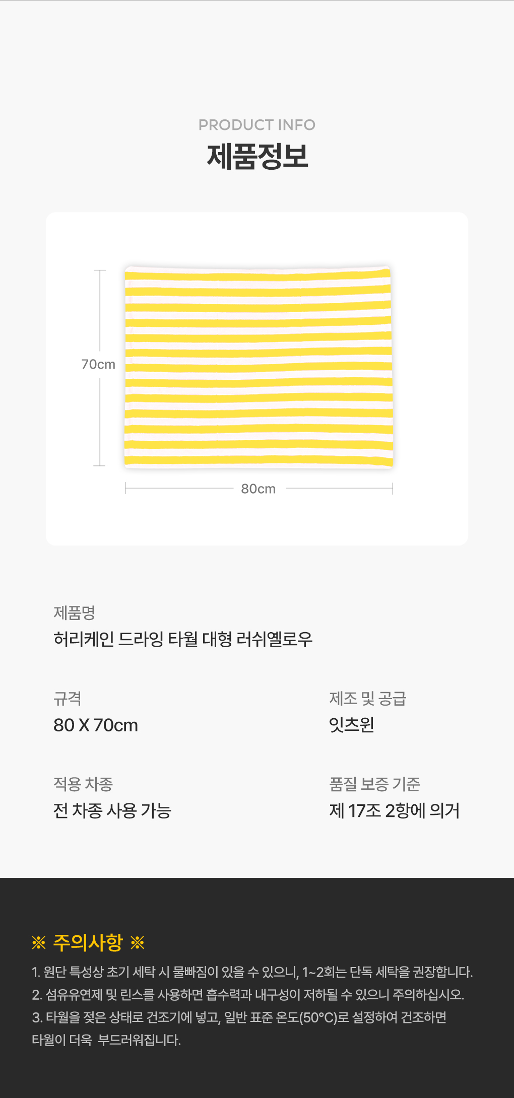 | 1. 품명 및 모델명 | [잇츠윈] 허리케인 드라잉 타월 대형 러쉬옐로우 |