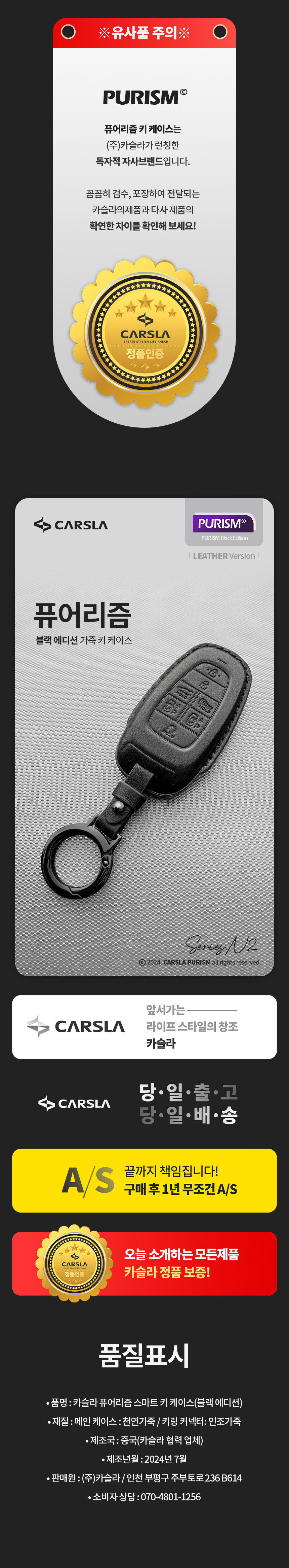 | 1. 품명 및 모델명 | 차 키케이스 천연 가죽 자동차 스마트 키커버 퓨어리즘 블랙에디션 |