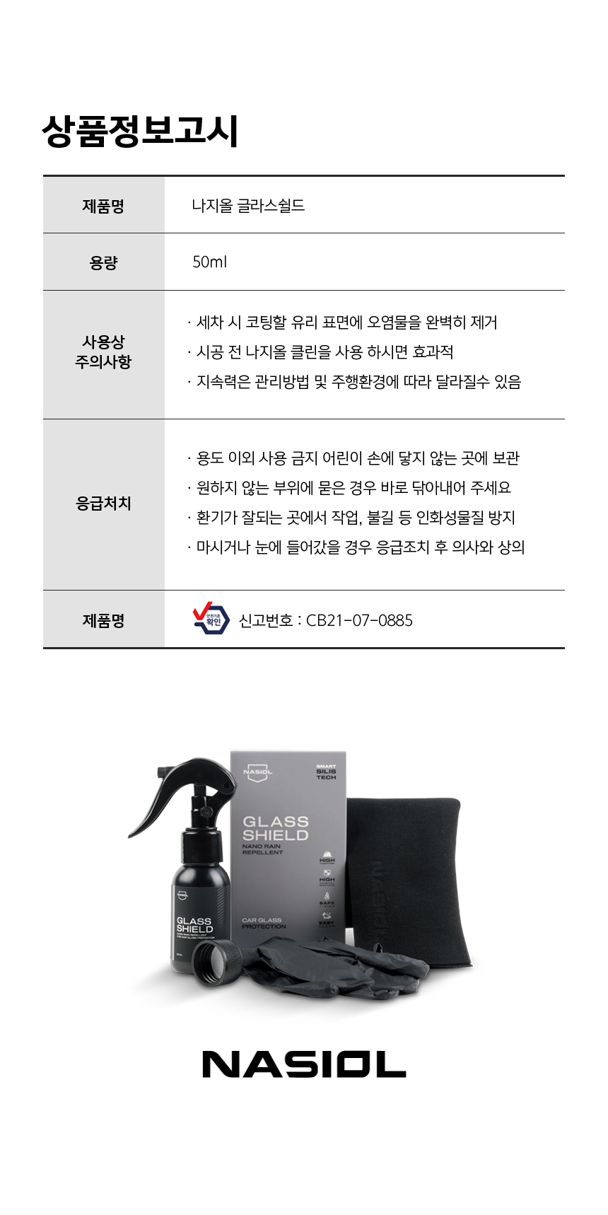 | 1. 품목 및 제품명 | 나지올 글라스쉴드 |