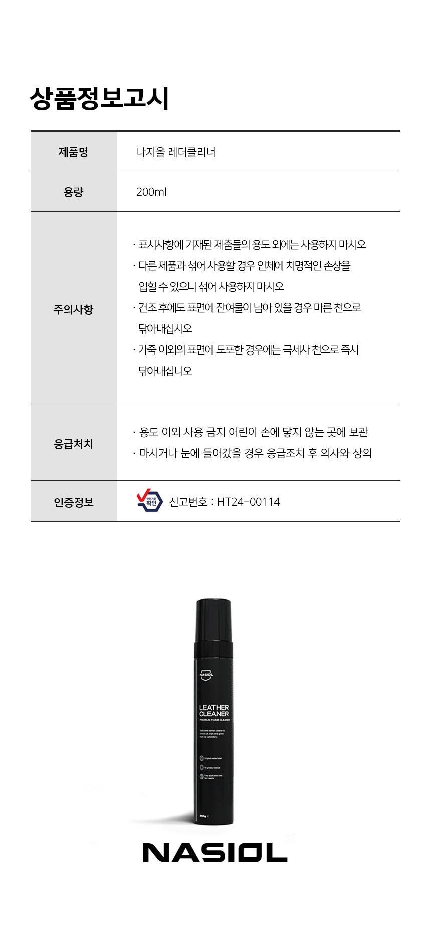 | 1. 품목 및 제품명 | 나지올 레더 클리너 |