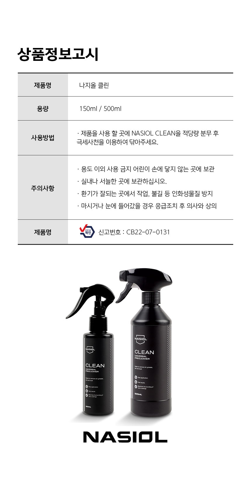 | 1. 품목 및 제품명 | 나지올 클린 150ml 탈지제 |