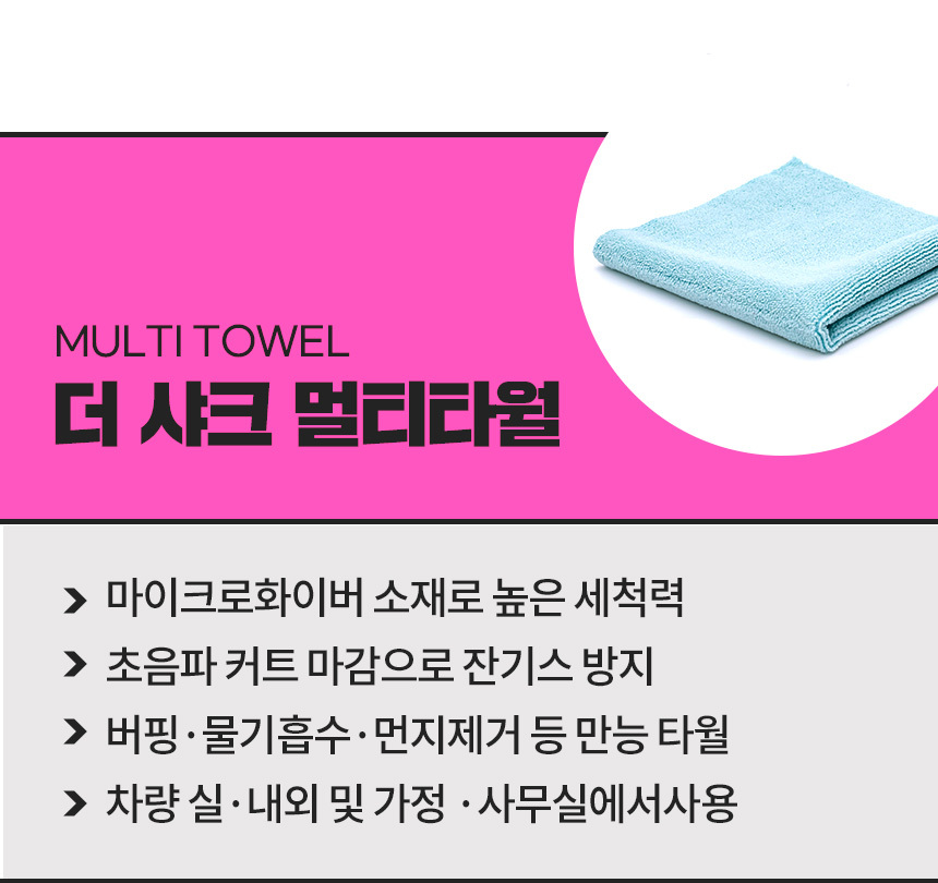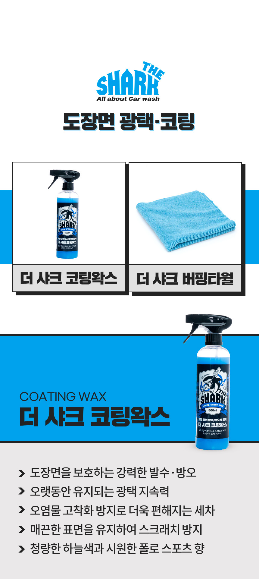 | 6. 크기 | 실내세정제, 코팅왁스, 타이어광택제 각 500ml 드라잉타월, 버핑타월, 멀티 타월 각 제품에 표기 |